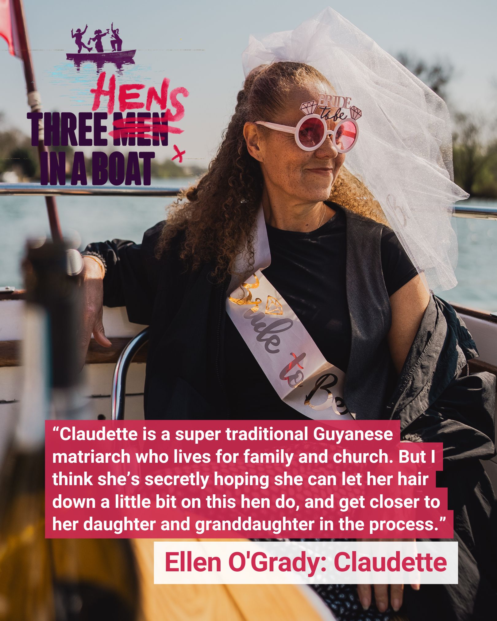 “When Jerome K. Jerome wrote Three Men in a Boat, he may not have expected that over a hundred years later it would inspire a play about three ‘hens’ on a hen party! Jerome’s romp of a novel provided me the perfect backdrop to celebrate the fun and interrogate the frictions between female family dynamics. I also wanted to explore heritage and how three generations in the same family connect with their own stories, inspired by my Guyanese grandmother and our own hand-me-down history. I hope you enjoy watching the characters muse and meander along the River Thames as much as I’ve enjoyed writing them. It has been so much fun reimagining this comedy classic for a modern audience and I’m really looking forward to performing alongside the amazing actors we have cast. If you’re a die-hard fan of the book then sorry I got rid of all the men but I reckon you’ll still love it!”