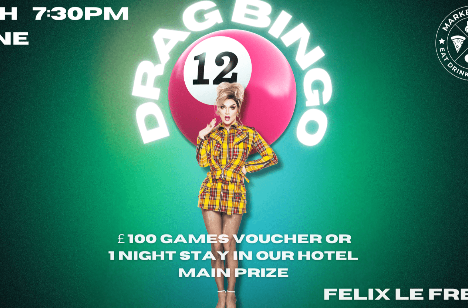 Prepare yourself for an evening of outrageous entertainment as she takes you to strange places at Drag Bingo! Insane prizes await, including a £100 games voucher or a one-night stay in our hotel!