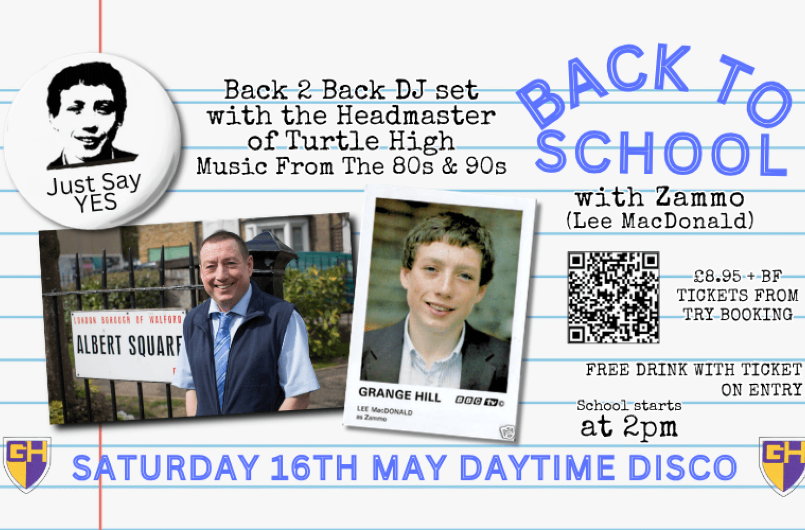 Joining us behind the decks is none other than Grange Hill legend Lee MacDonald (aka ZAMMO!)