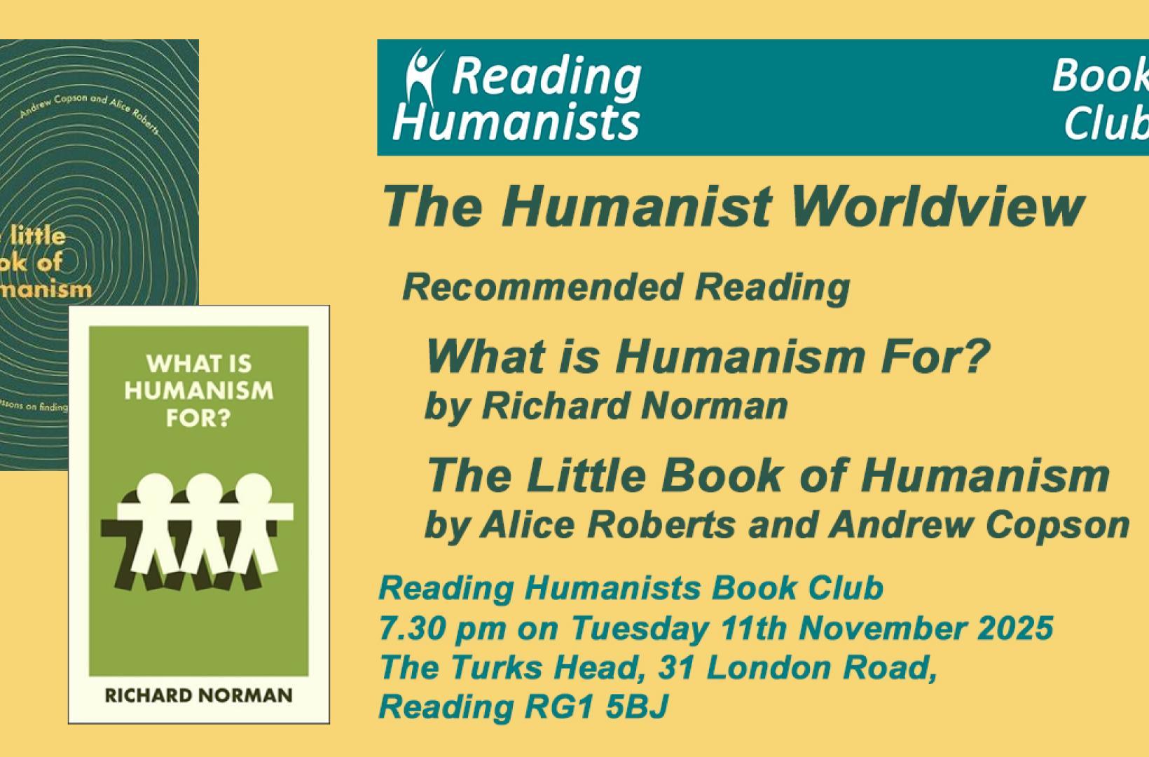 Many of us are humanists without knowing that the term Humanism describes our approach to life. For our next meeting we have chosen to read books on Humanism - What is it to live a good life without religion?