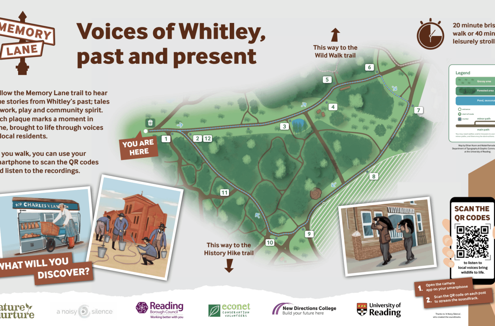 This special trail brings Whitley's past into the present. Along the way, beautifully designed plaques mark moments in time, each linked to real memories shared by local residents. Through simple audio recordings, you will hear first-hand stories of work, play, family life and community spirit that have shaped this place. As we walk, we will pause to listen, reflect and notice the landscape around us. Some stories may surprise you. Others may spark memories of your own.