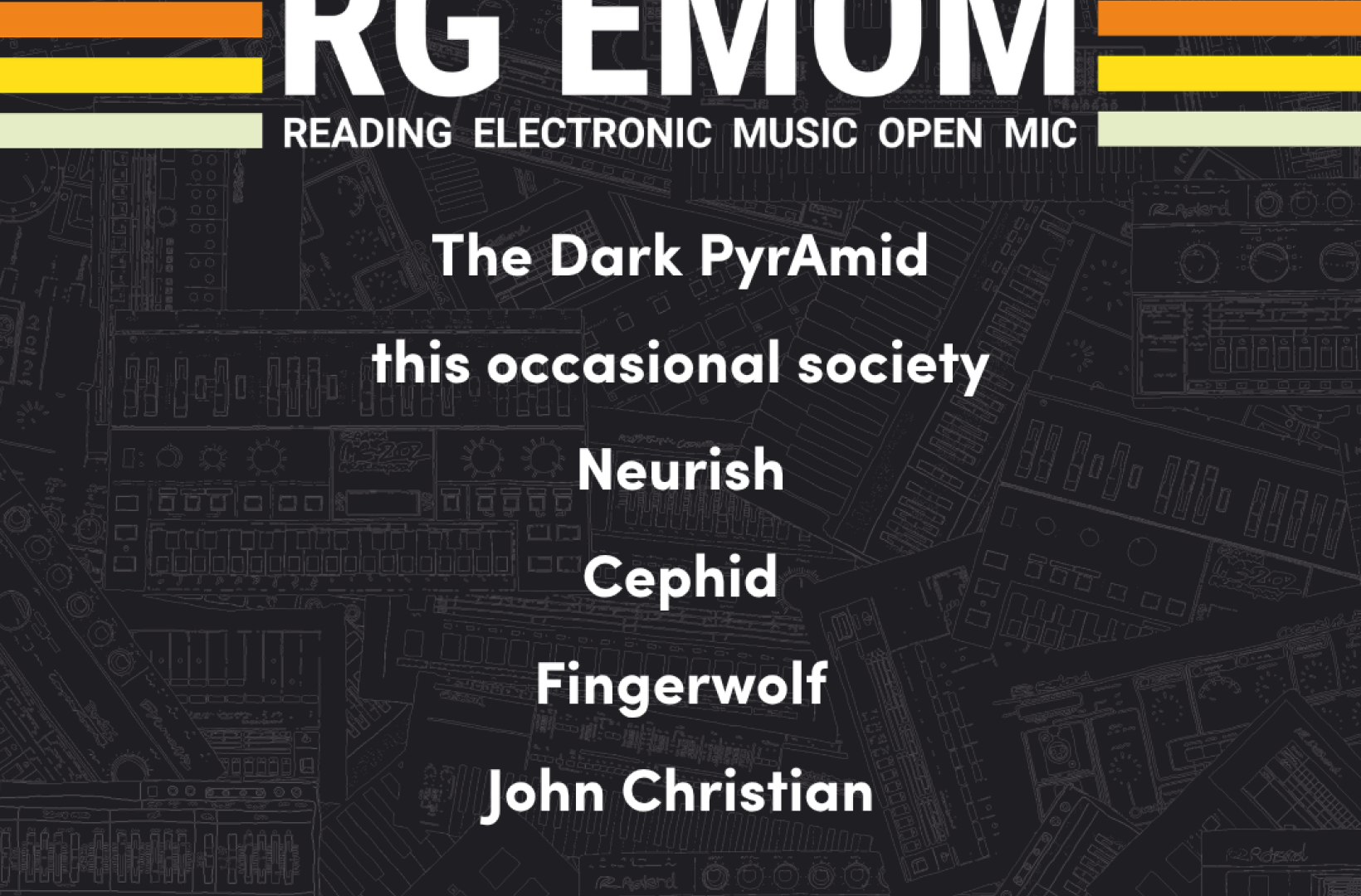 Each EMOM event aims to showcase 5 or 6 diverse electronic performances.