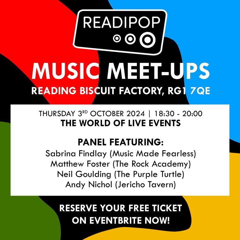 A panel featuring Sabrina Findlay of Music Made Fearless, Matt Foster of The Rock Academy, and Andy Nichol of the Jericho Tavern. Join Harrison and Readipop at Reading Biscuit Factory to listen to these experts discuss the work of Live Events, but don't forget to bring some questions of your own!