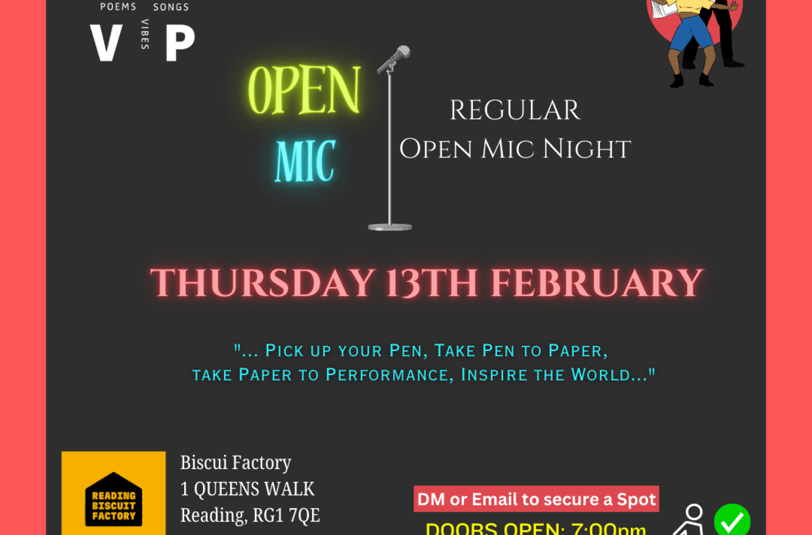 RSVP stands for Raps, Songs, Vibes & Poems an open mic night open to all. It's a night full of music, creative experience and vibes. A night not to miss, we have built a community of individuals who come to make friends, express themselves and take in the randomness of a night at RSVP. Where creativity converges; the creative Culde-sac