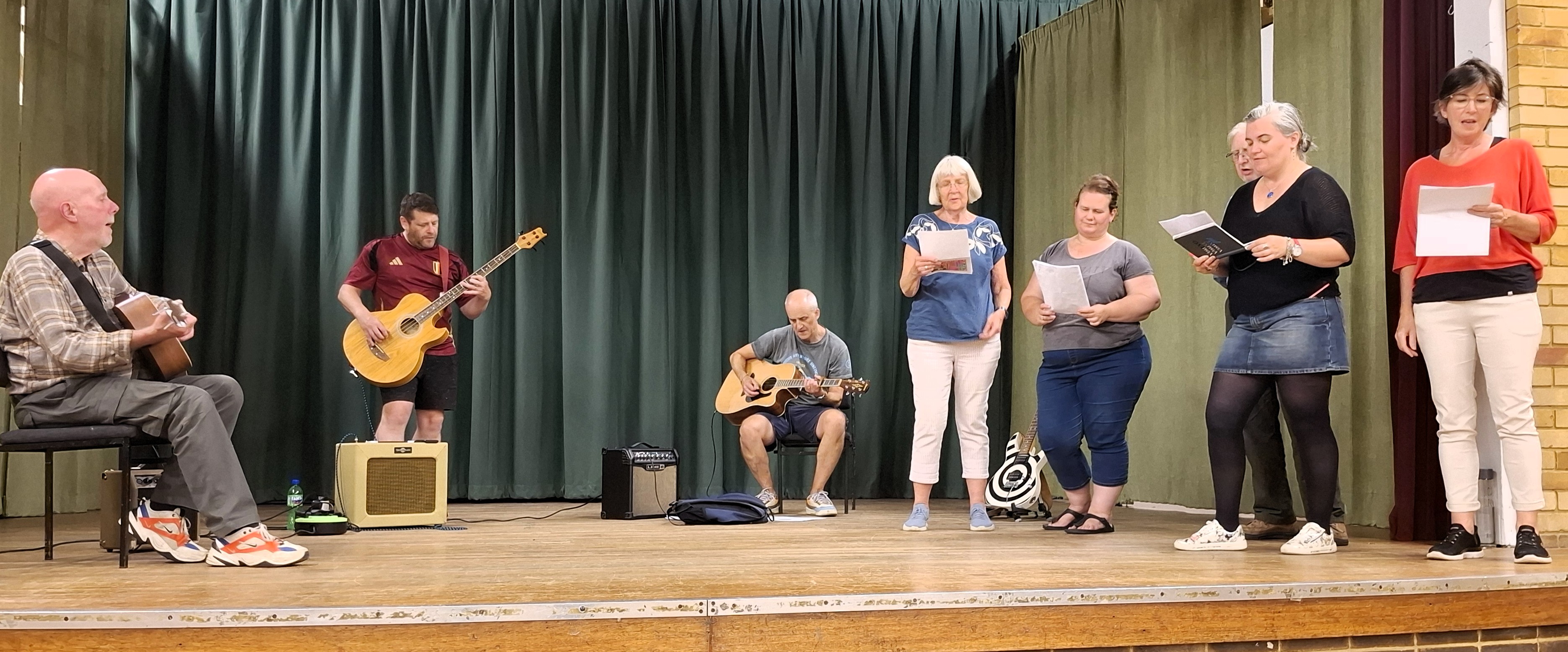 The Rough Diamonds musical group (consisting of guitars, piano and even a few drums and tambourines) are progressing well and have already recorded the backing tracks for the singers to use in practice.