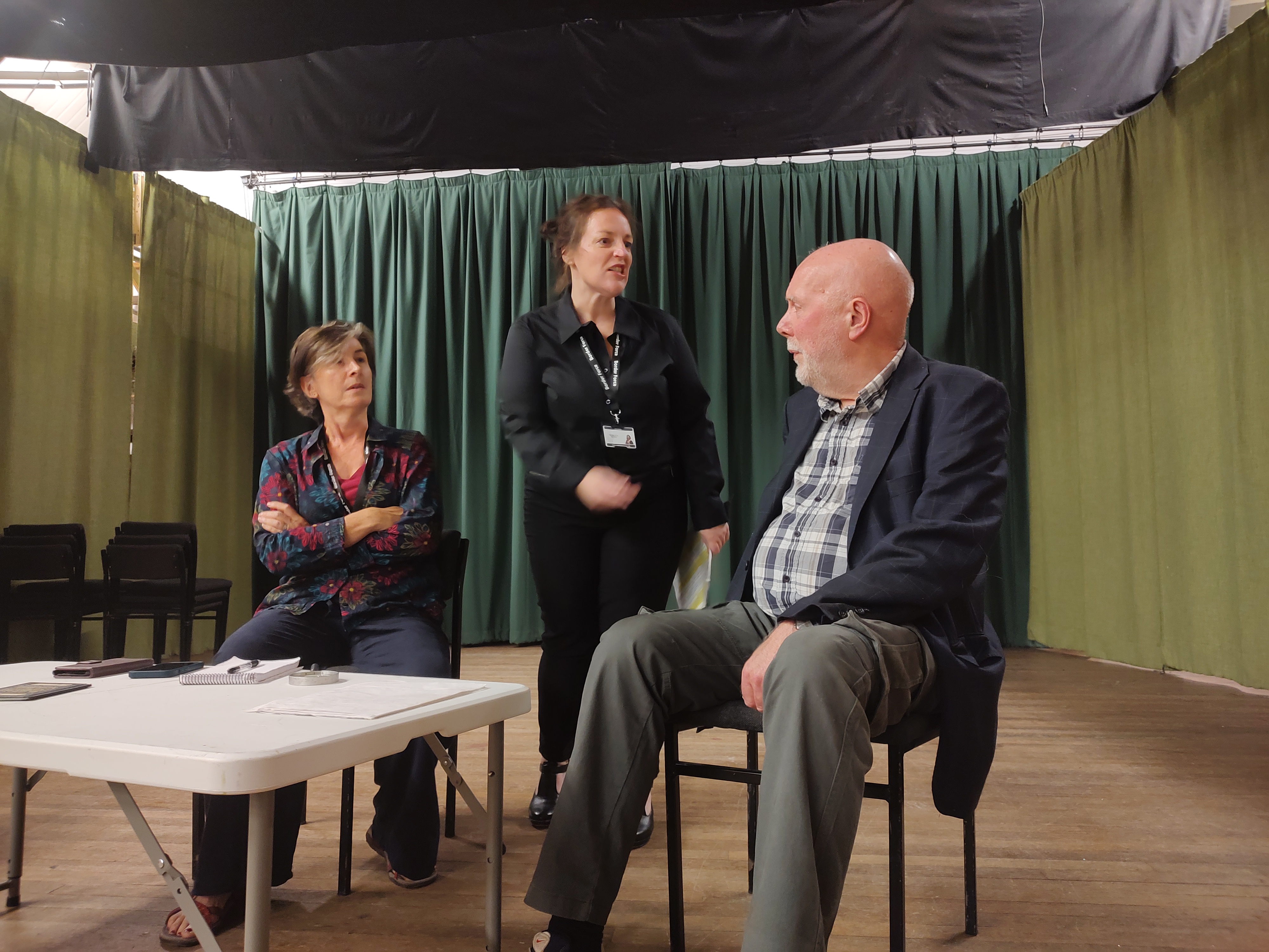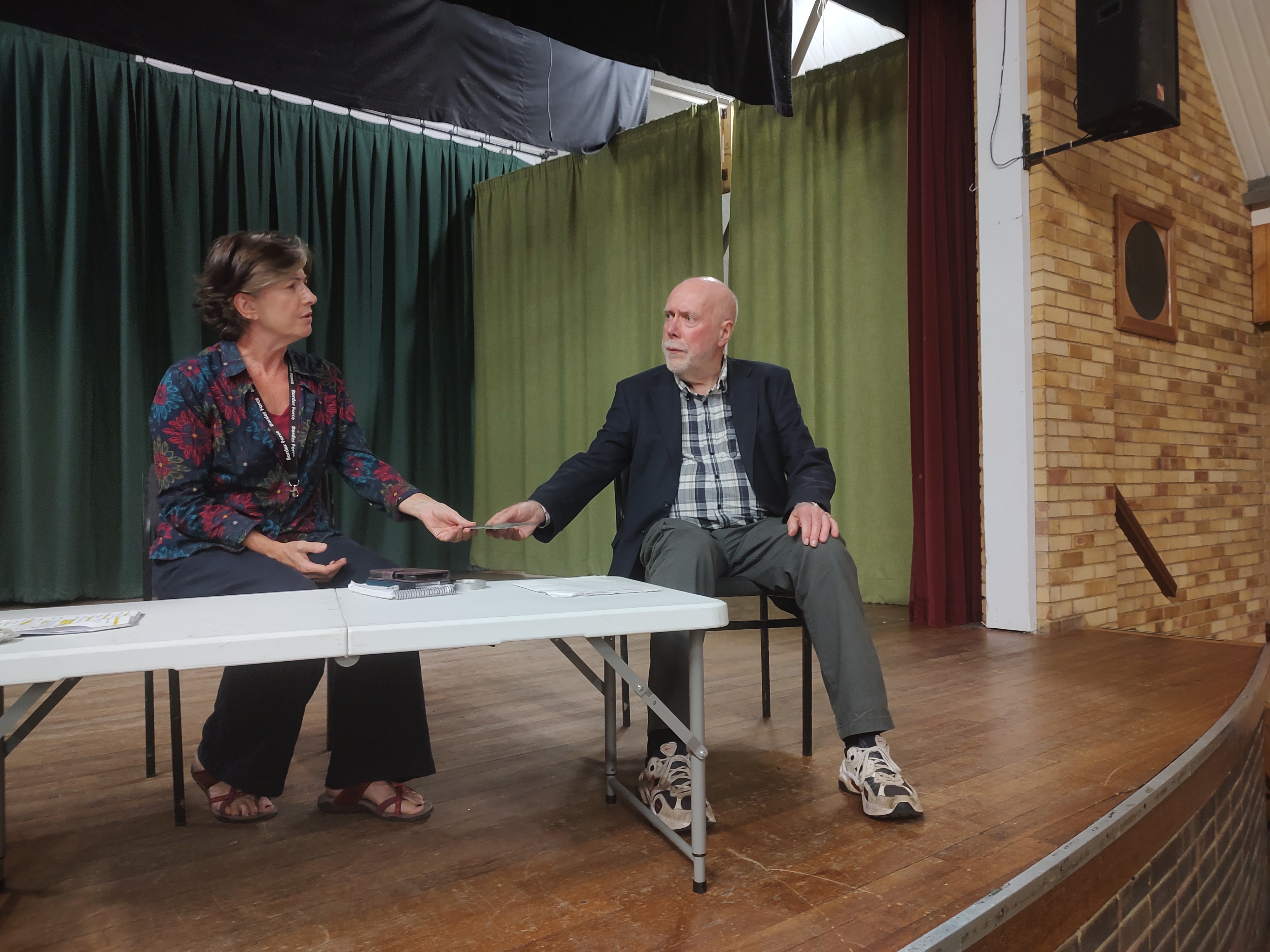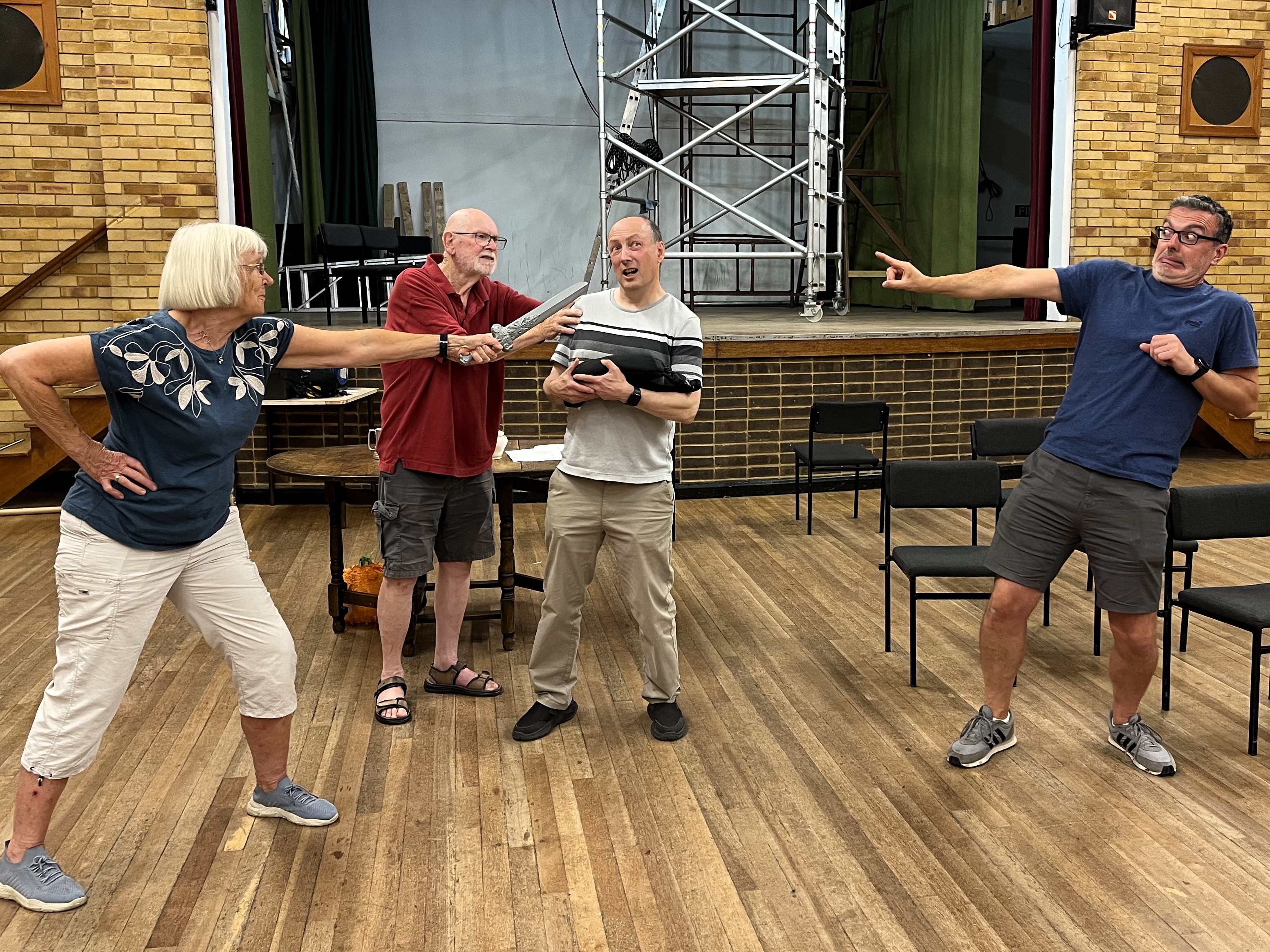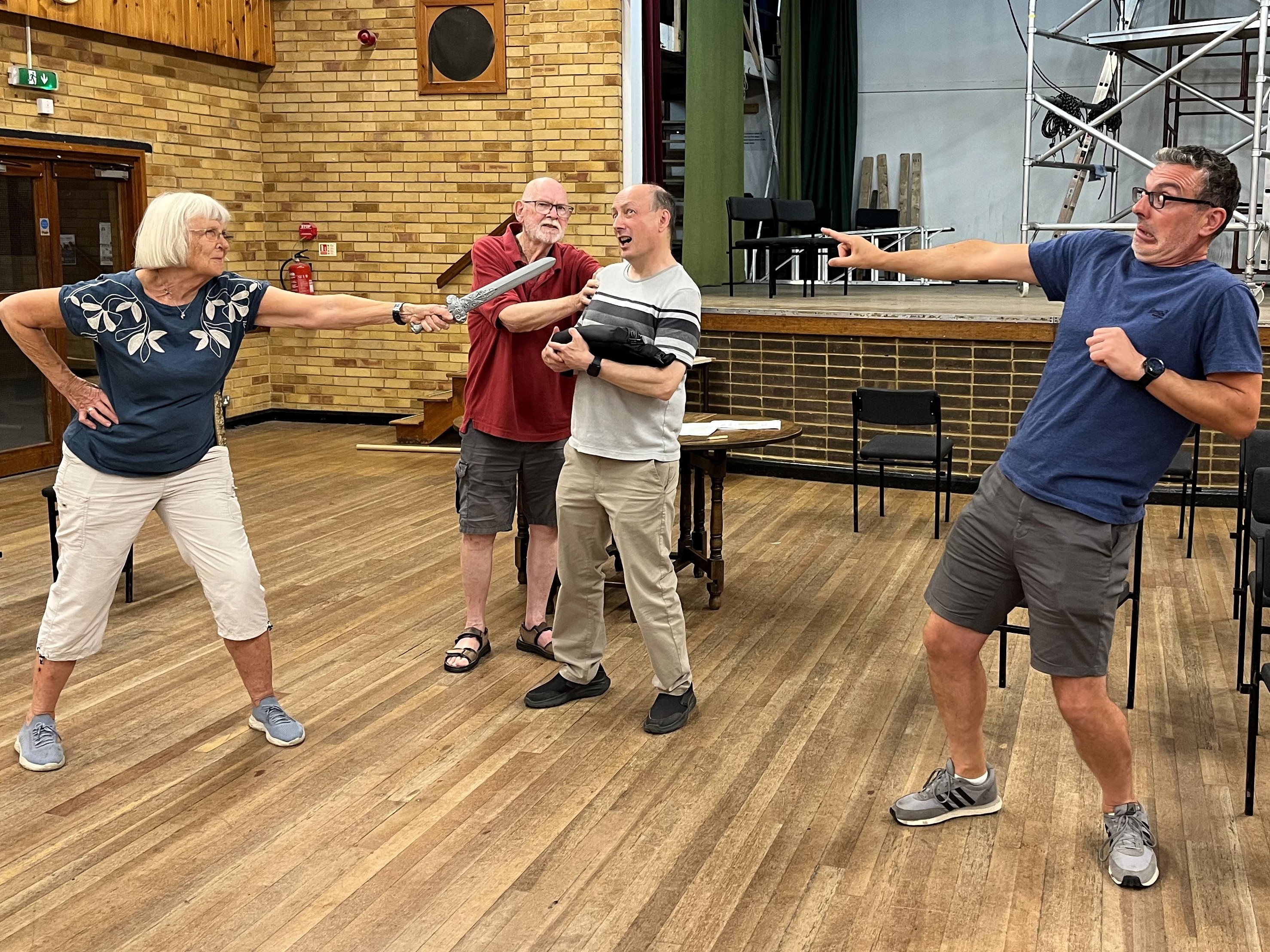 The individual short plays, dances and musical items have all been well-rehearsed over the summer and now we are bringing the show together and smoothing over the joins between the acts. Jocelyn Robinson, the show’s director, is being helped in this by Rakhi Drennan, our Stage manager and our compere, Pete King, who will be leading the audience through the programme.