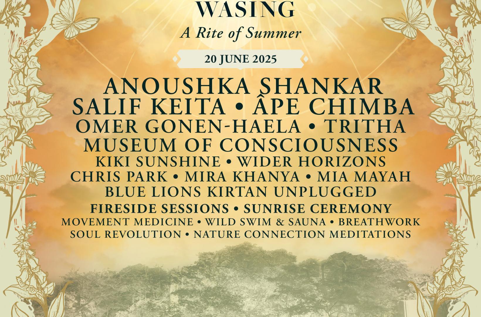 Now reimagined as an intimate one-day event, Solstice at Wasing will take place on Friday 20th June 2025 in the enchanting Sacred Glade, nestled within The Woodland at Wasing. Celebrating the Rite of Summer, the festival promises an unforgettable night of musical experiences, with performances by incredible artists Anoushka Shankar, Salif Keita, Omer Gonen-Haela, Âpe Chimba and many more.