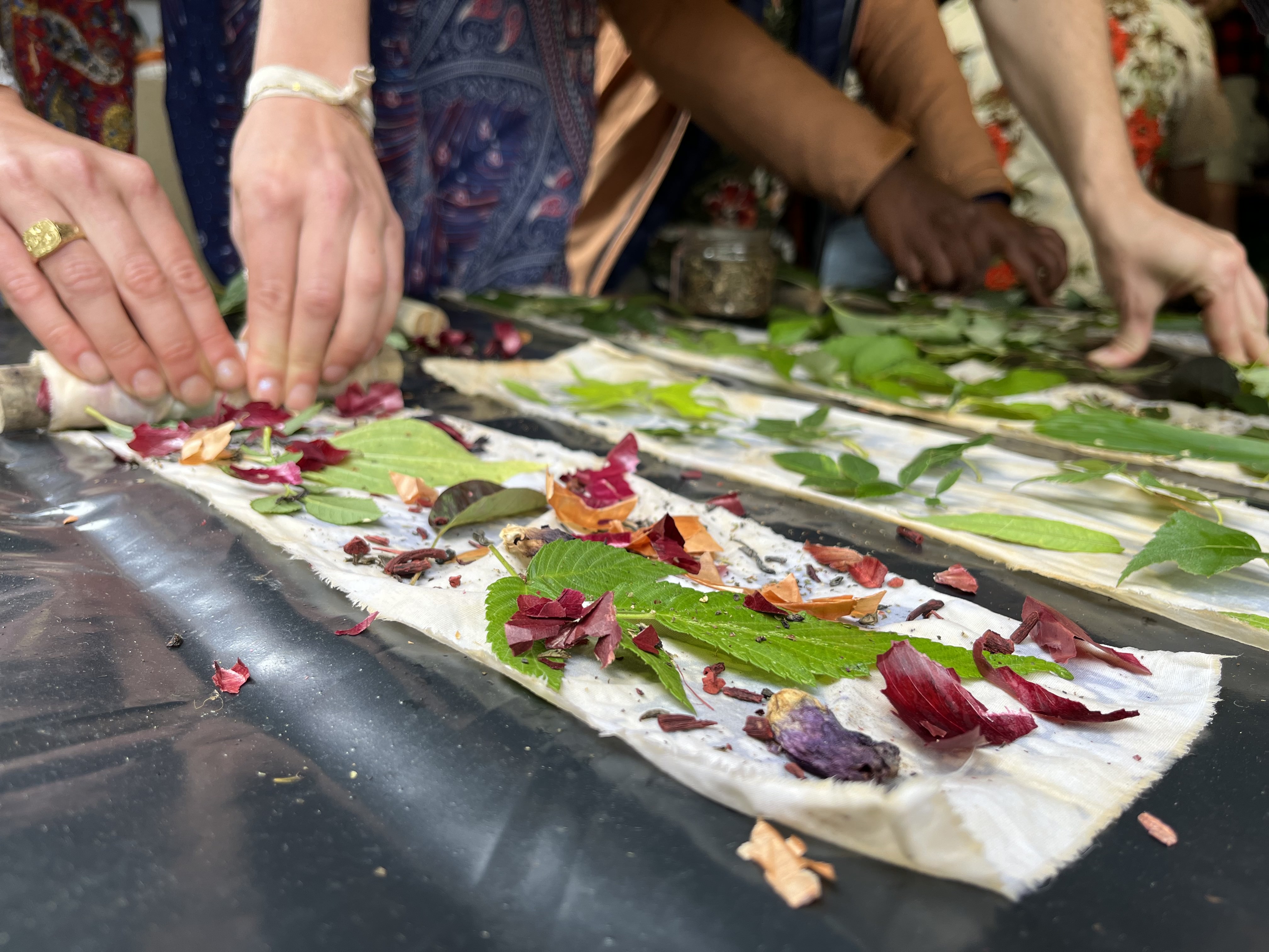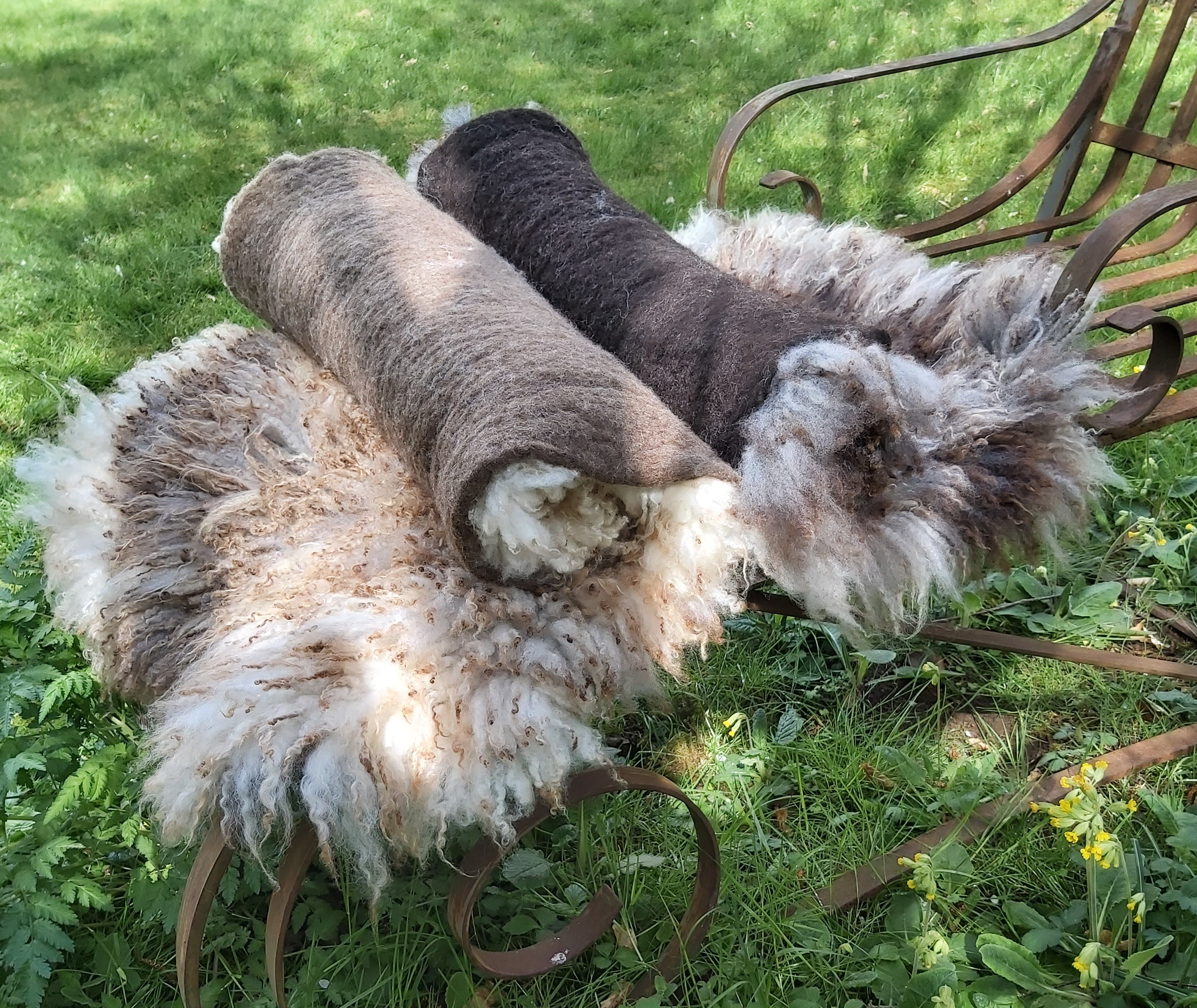 Steph makes felted sheepskin rugs using the fleece from The Outside flock and creates botanically printed, plant dyed quilts using local, foraged and sustainably sourced dyes- available on our website.