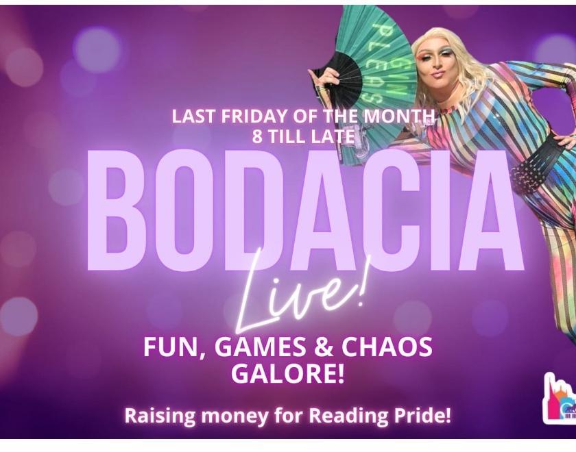 Cabaret & Variety , Comedy , Community & Networking , Interactive & Games , LGBTQ+ Bodacia's Gameshow Live! Bla Bla, The Last Friday of the month, 20:00 Donations collected More info