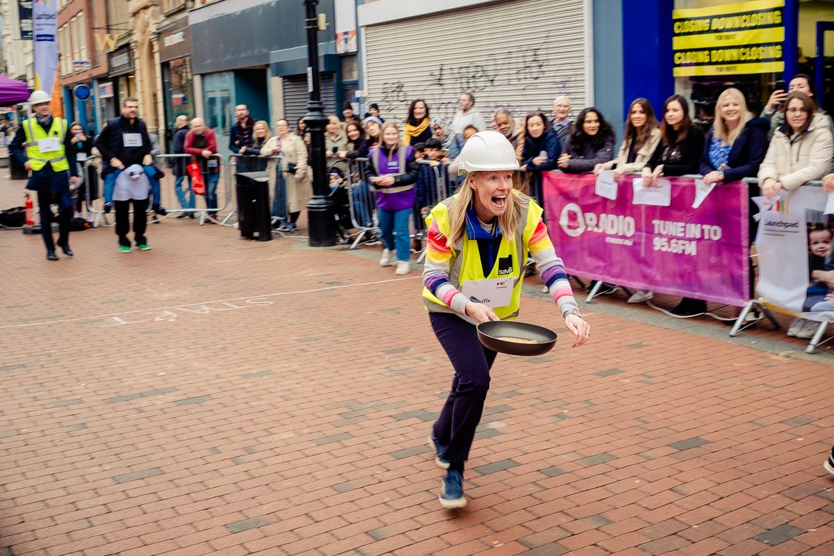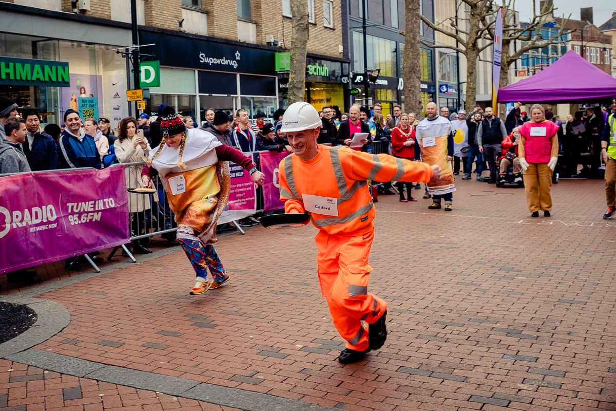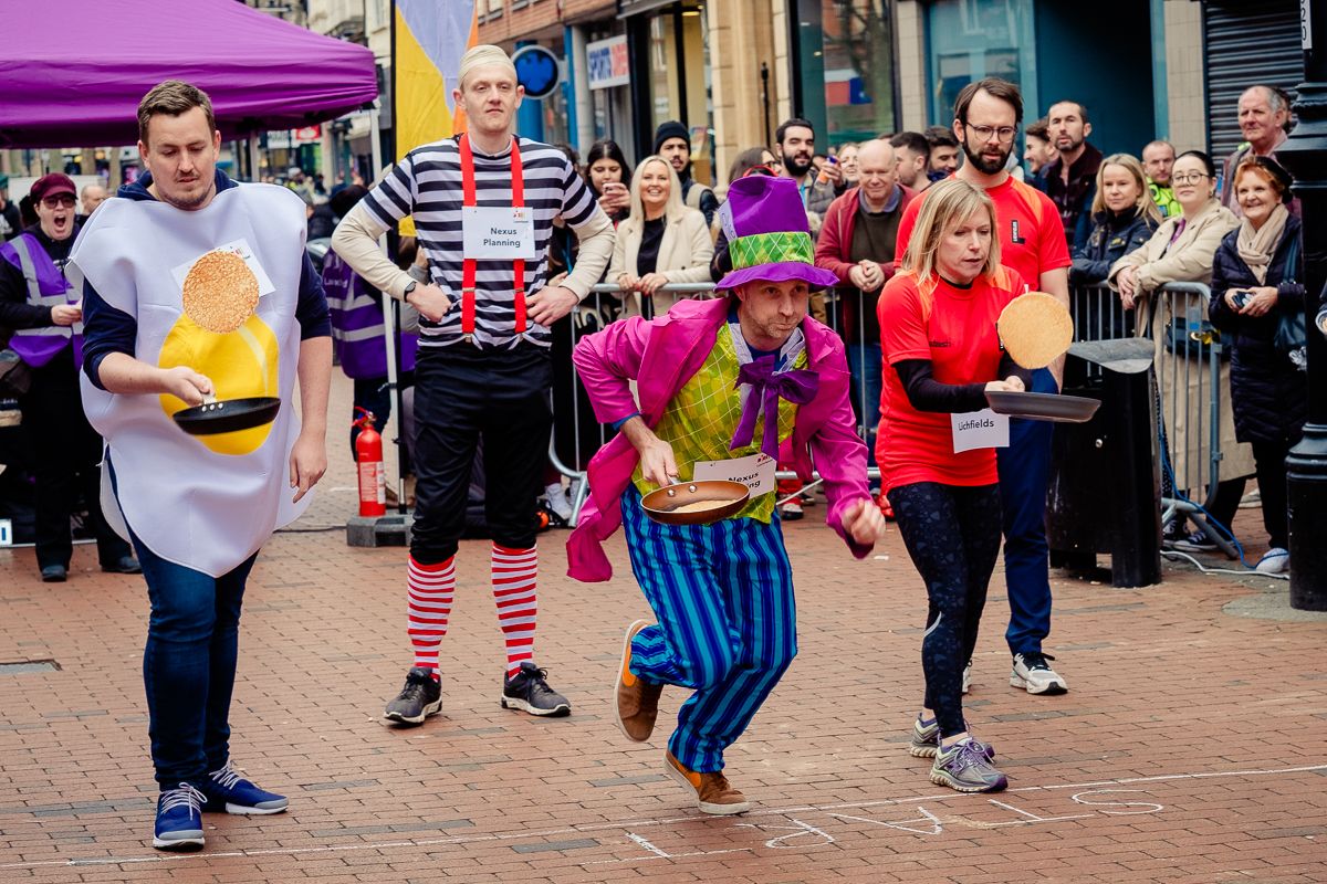 A total of £7,900, and counting, has been raised at Launchpad’s annual Pancake Race which saw teams batter it out on Broad Street on Shrove Tuesday, 21 February 2023.