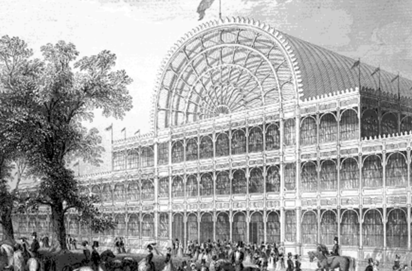The Crystal Palace was originally a temporary structure built in Hyde Park, London to house the 1851 Great Exhibition. It was an entirely new type of public building making great use of iron and glass and it became one of the principal exhibits of the Exhibition.