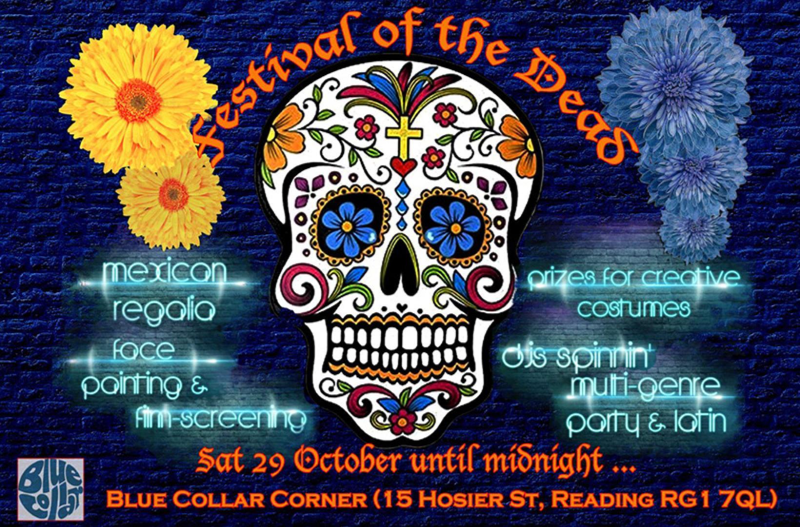 Get transported to a Mexico-inspired celebration of the after-life at Reading’s first Festival of the Dead on Saturday 29th Oct at Blue Collar Corner.