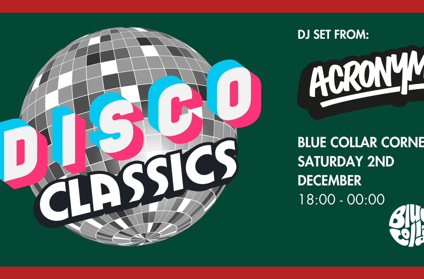 Join us for a night of 100% disco classics at Blue Collar Corner played by the one and only DJ Acronym.