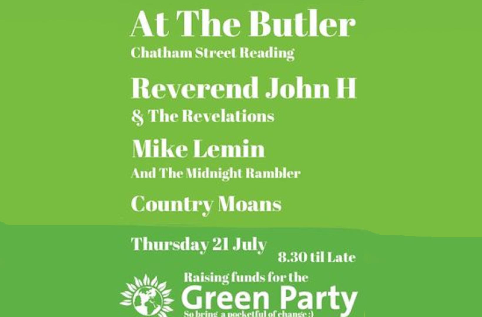 Three local bands are putting on an evening’s entertainment in the freshly-refurbished gig room at The Butler pub in Chatham Street Reading, on Thursday 21 July, to raise funds for the Green Party.