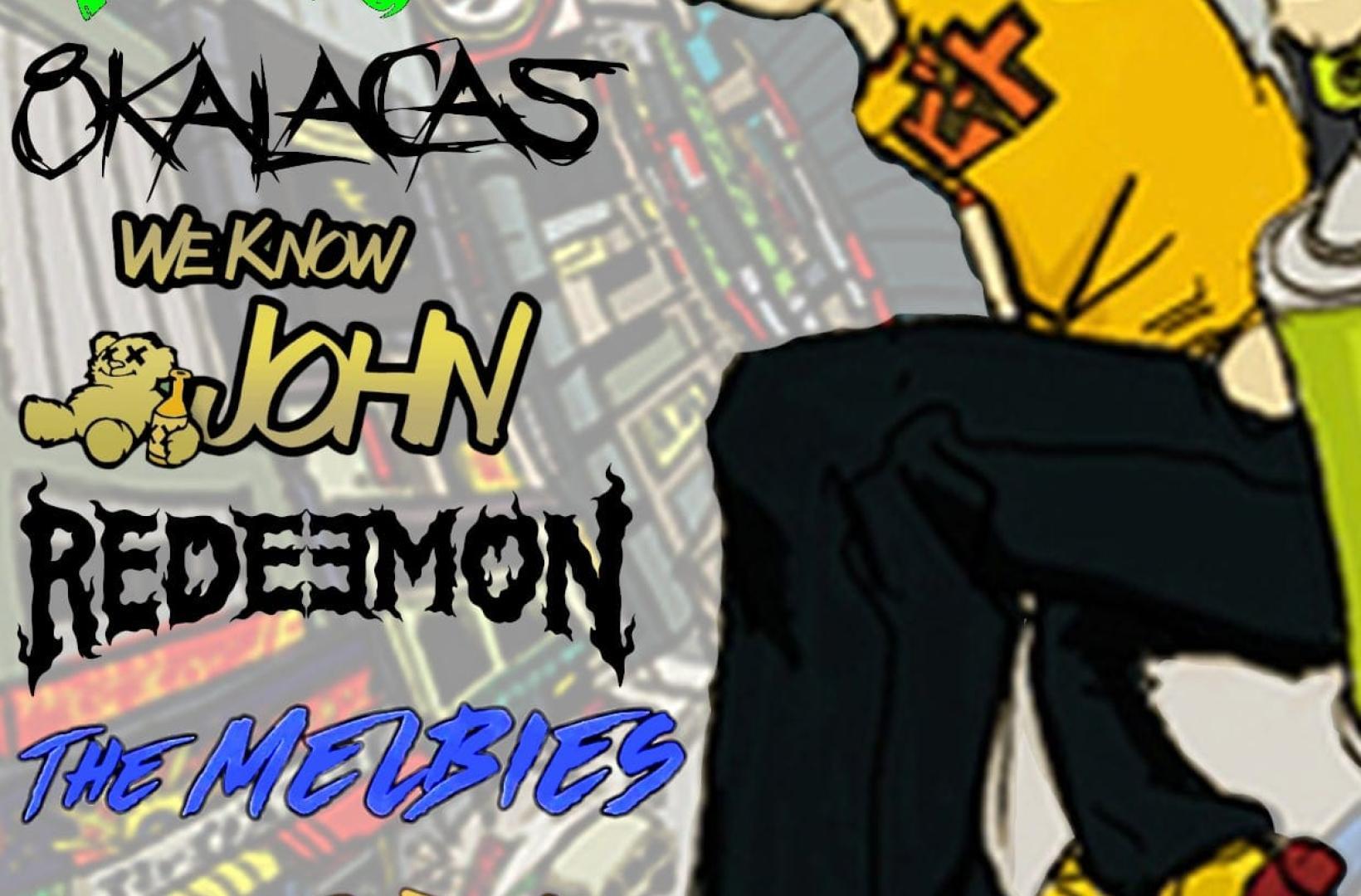 Things have changed a bit. Friday the 9th of August has now turned into an absolute rager!! We still have the amazing Free Sergio, The Melbies, Launch Control, Tape It Shut and We Know John. Joining them now as part of the "kings of skacore tour" is the mighty Redeemon and - from the USA - 8 Kalacas!