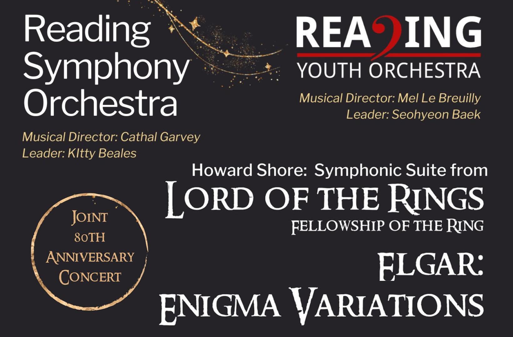 Reading Youth Orchestra will then take to the stage to transport you to the fantastical realms of Middle-earth with Howard Shore's Symphonic Suite from The Lord of the Rings before both orchestras will join together to perform Elgar's masterpiece, Enigma Variations, a fitting tribute to our shared 80-year musical legacy and friendship.