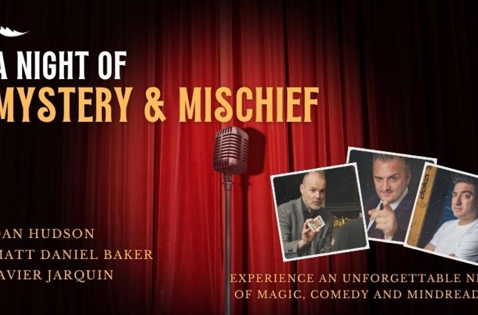 Step into a world where reality bends and the laughs never end! Join us for Mystery & Mischief Night, an electrifying evening that blends mind-blowing illusions with side-splitting humour. Featuring some of the most talented magicians and funniest comedians around, this one-of-a-kind show promises to leave you both amazed and in stitches.