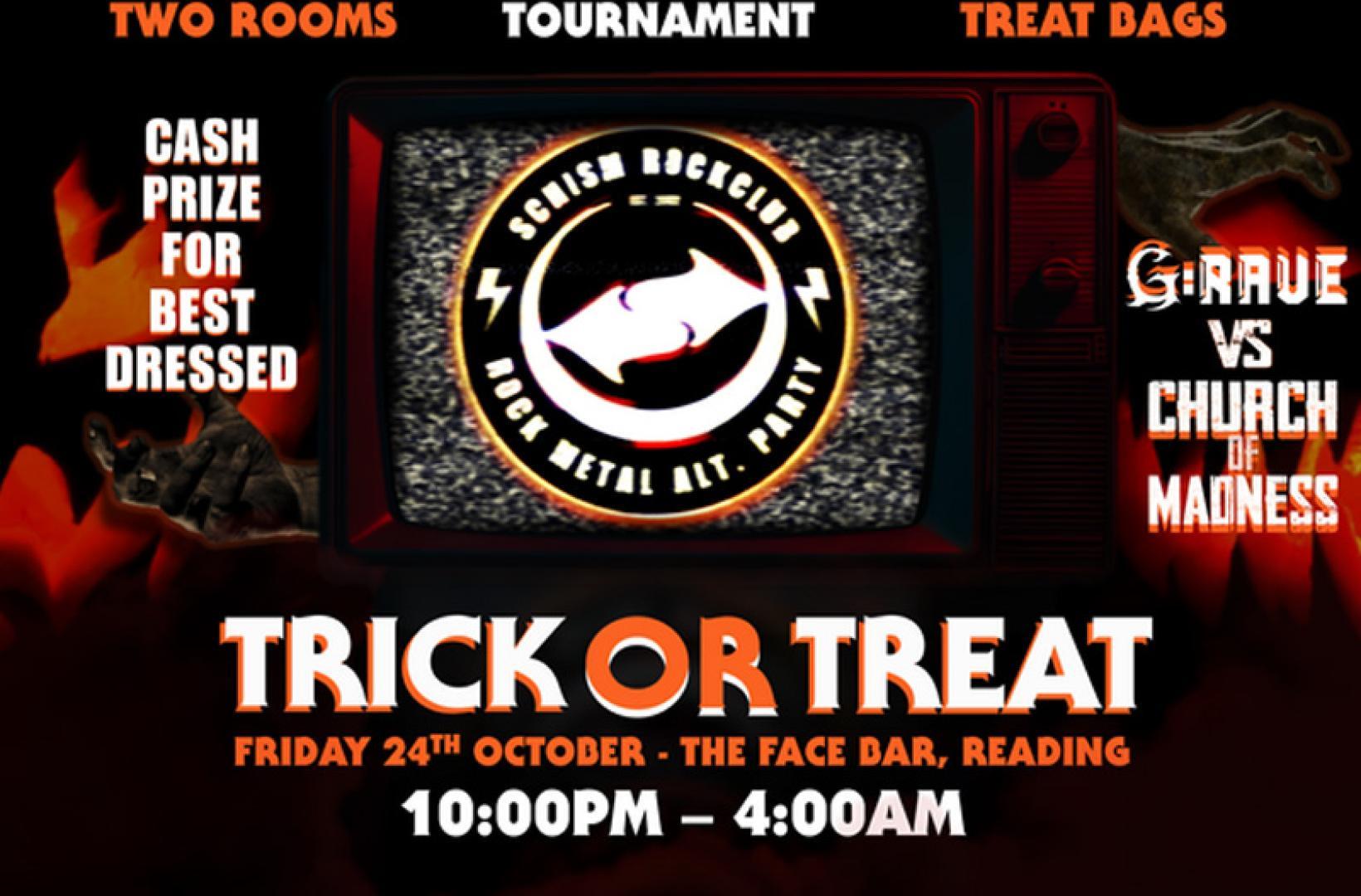 So, come to a Schism basked in smoke at night, with two rooms of music that are sure to delight. With the altars lit, the spirits meet. Now it's just one week until Halloween, and this is your Trick or Treat.