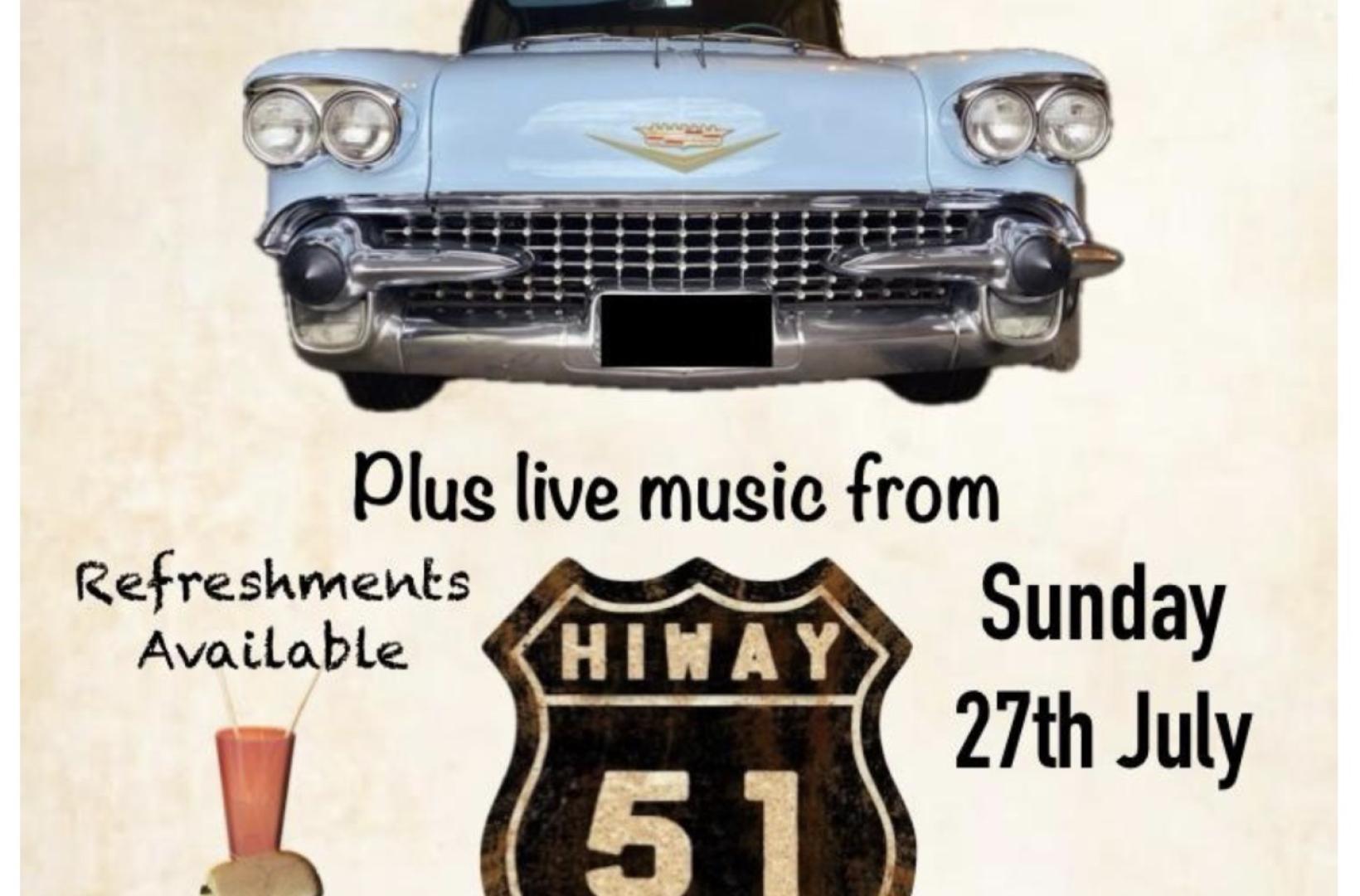 This is a special one-off event: an invitation to bring your classic American car or motorbike, enjoy a drink and a bite to eat and soak up the country/ rockabilly sounds of Hiway51 on stage in the garden.