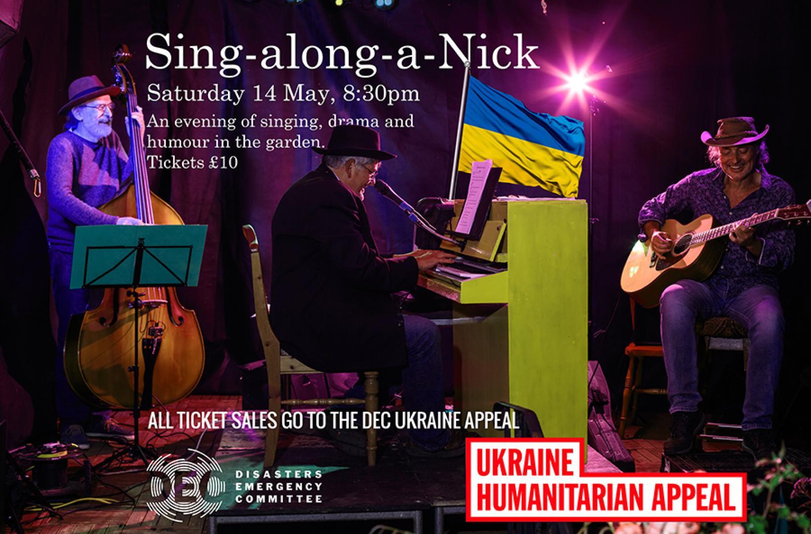 Kicking off this year's season of Gigs in the Garden at The Flowing Spring is the Sing-along-a-Nick trio, back on our main stage. What better way to start off our outdoor concerts than with a mass singalong, complete with the usual level of humour, drama, acting, gadgets and silliness? And 100% of ticket sales will go to the Disasters Emergency Committee for its Ukraine Humanitarian Appeal.