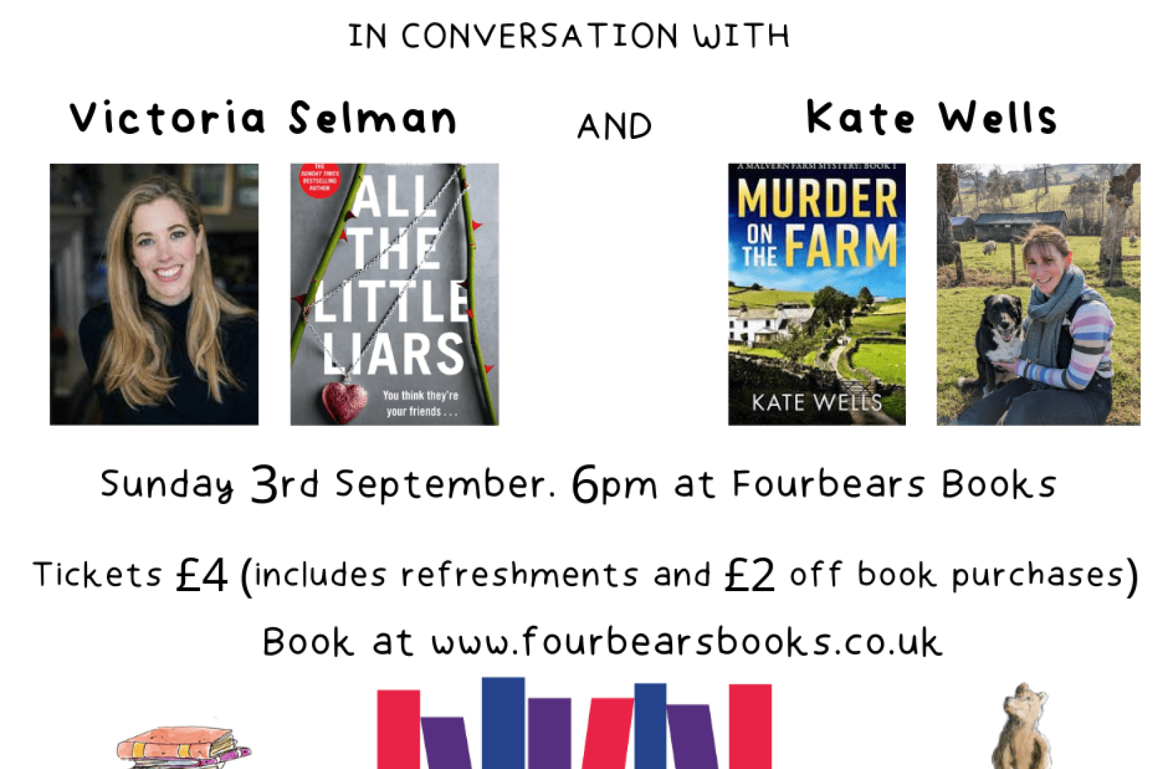 Fourbears Books is hosting a conversation with 2 brilliant authors about their latest releases in the bookshop in Caversham. Sunday Times Bestselling author Victoria Selman will be discussing "All the Little Liars", while local author Kate Wells will be discussing her debut Crime novel, "Murder on the Farm".