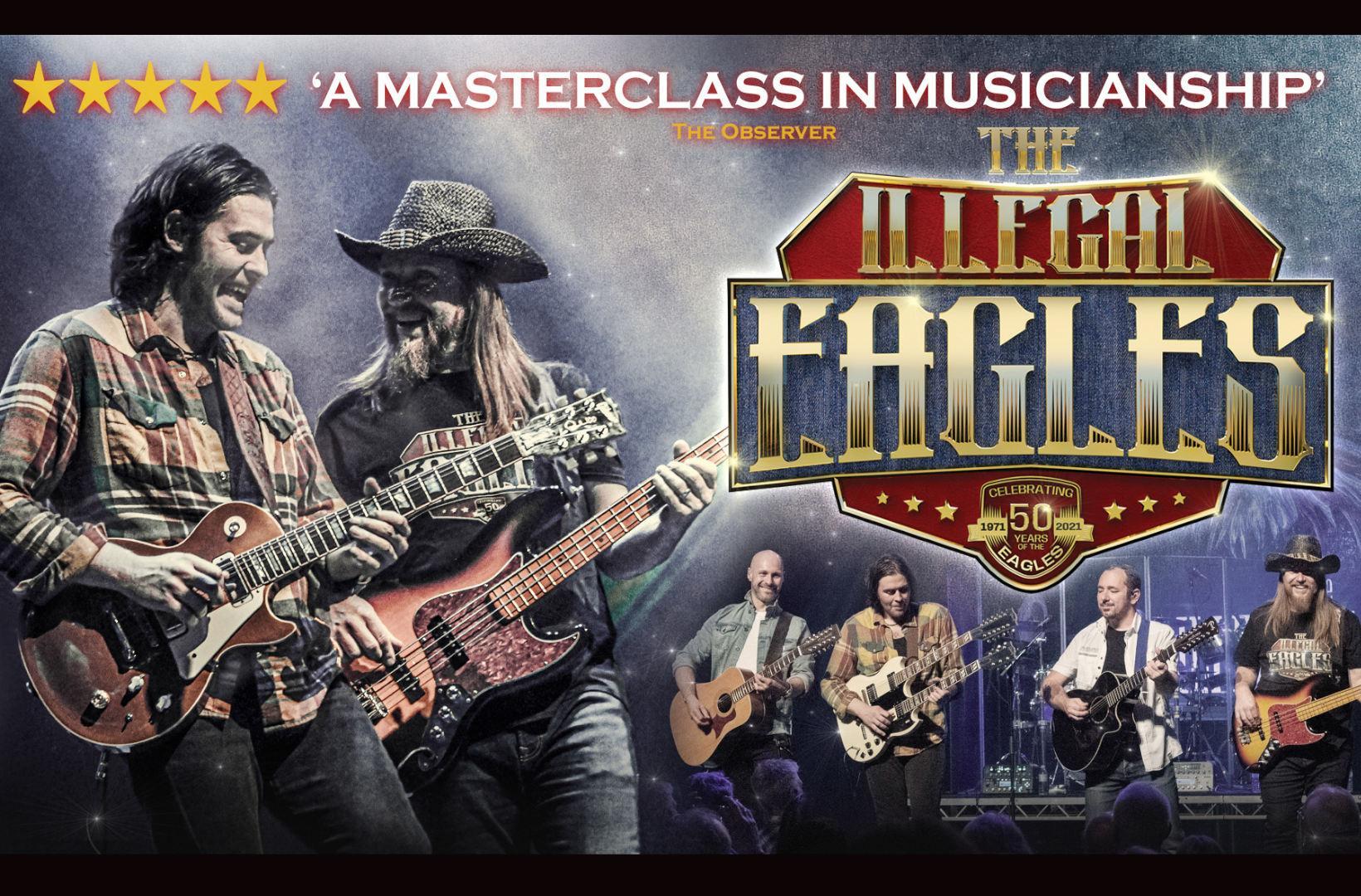 Extremely tight harmonies & an acute attention to detail are synonymous with The Illegal Eagles, now in their 24th year on the road.  Following a number of critically acclaimed UK & European Tours, The Illegal Eagles have established themselves not only as the ultimate celebration of The Eagles, but as one of the foremost authentic and talented shows in the world.