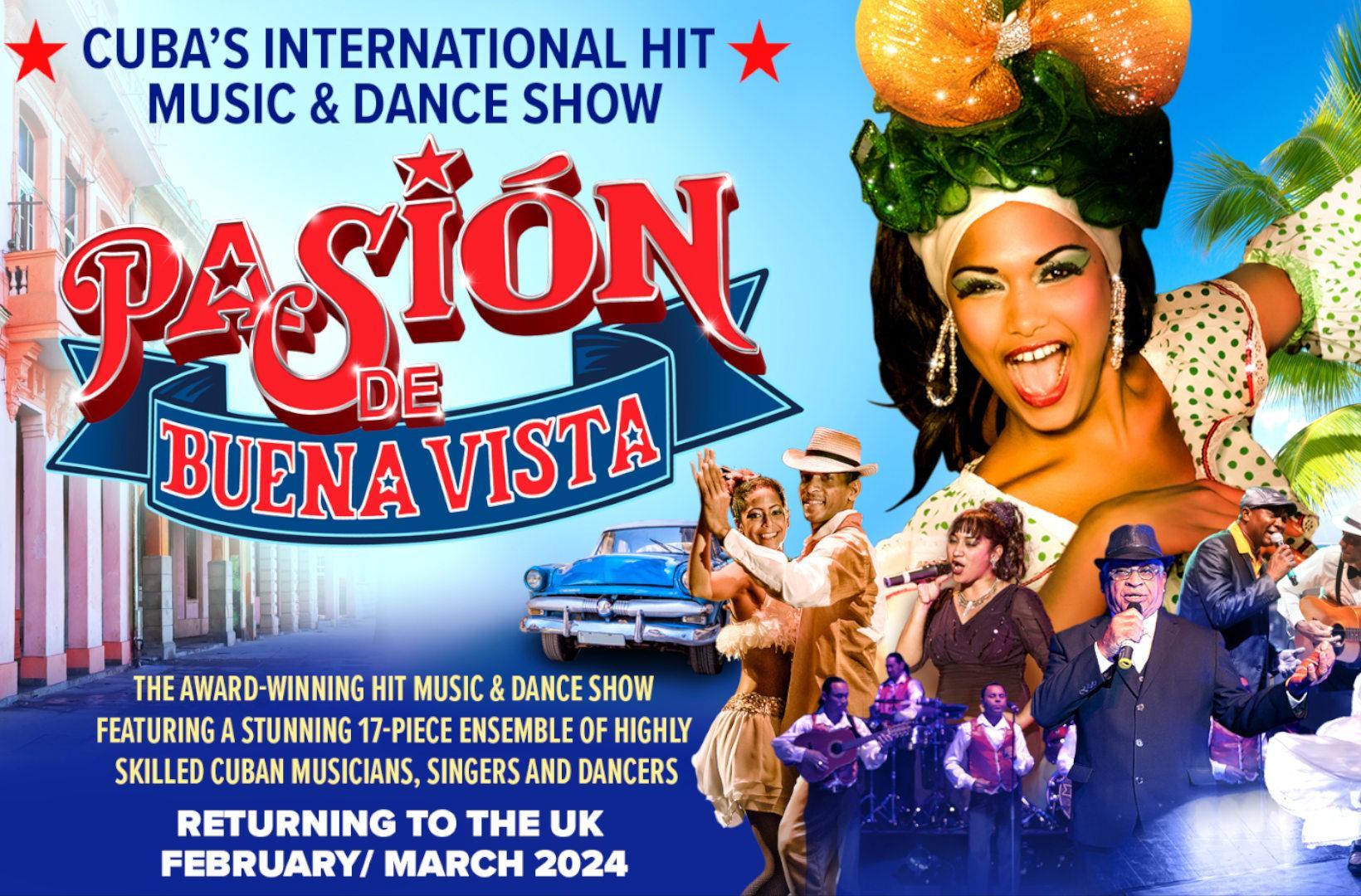 All the way from Havana, Pasión de Buena Vista’s celebrated dance troupe ‘El Grupo de Bailar’ will combine once again with ‘The Buena Vista Band’ - a stunning twelve-piece ensemble of highly skilled Cuban musicians and singers renowned throughout Cuba and the Latin Music community - to present their unique and exhilarating stage show, transporting audiences on a journey through the streets of the Cuba via an array of the island’s most iconic dances, including the irresistible Salsa, Mambo, Cha-cha-cha, Danzón and Bolero.