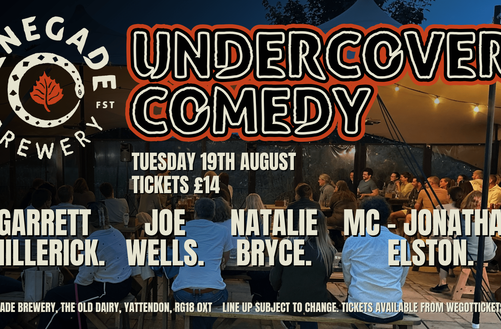 Join us for a top night of comedy at the Renegade Brewery. A night full of laughs under canvas. Featuring award winning and TV Comedians