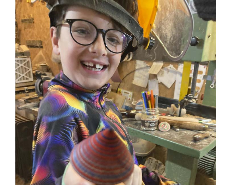 Imagine stepping into a world of tools and wood, where together you create something magical - a wooden spinning top!