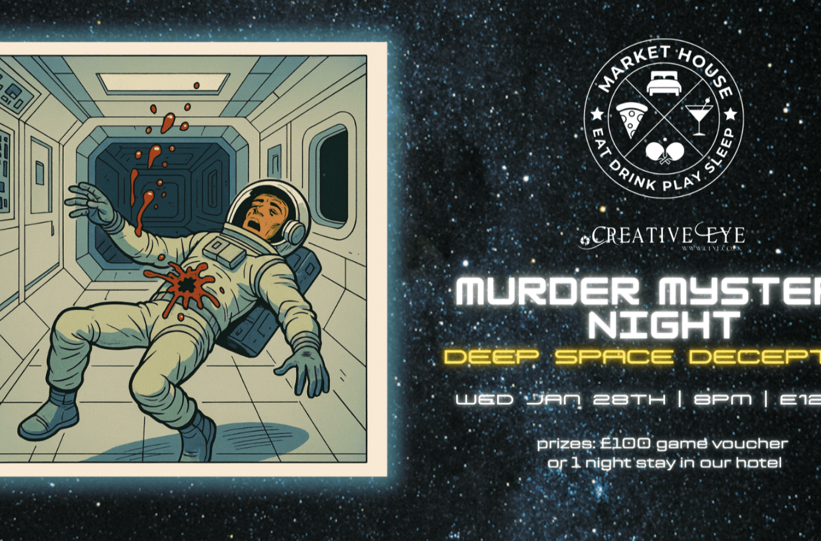 A murder has struck the space station and panic is spreading fast! Do you have what it takes to catch the killer in zero gravity? Prove it! Deep Space Deception throws you into thrilling quiz night challenges, escape room style puzzles, and hands-on evidence. Follow every clue and expose the truth lurking in deep space!