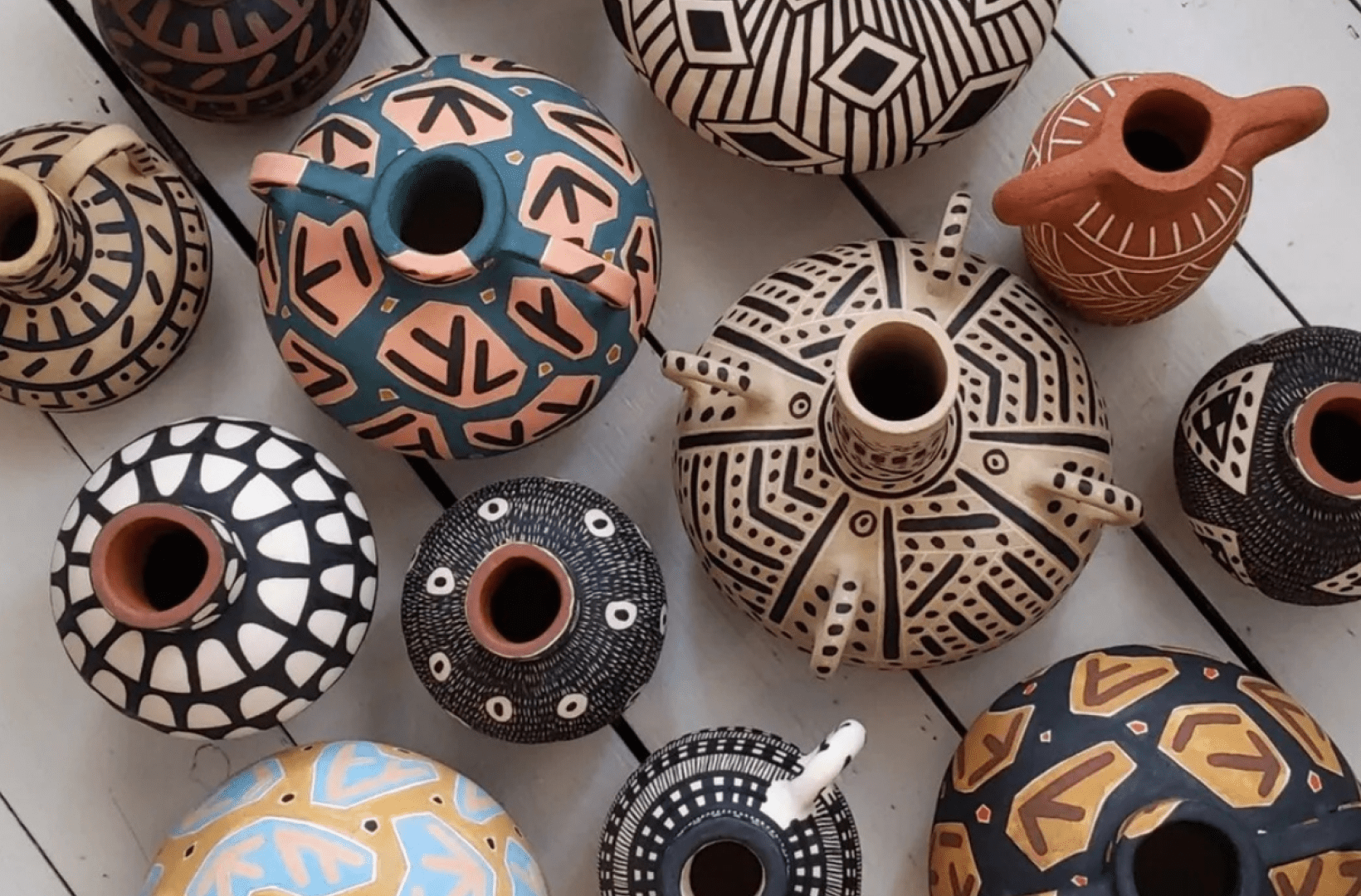Use traditional techniques to create patterned pots in clay. You will learn how to make pinch pots and use the sgraffito technique of carving through one colour of clay to reveal the colour underneath.