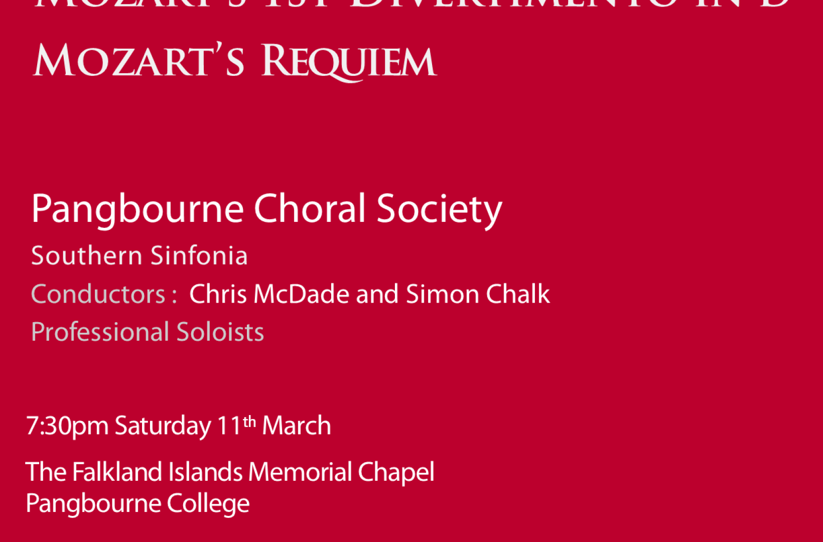 A concert of 2 parts: orchestral pieces played by Southern Sinfonia then Mozart's Requiem sung by Pangbourne Choral Society.