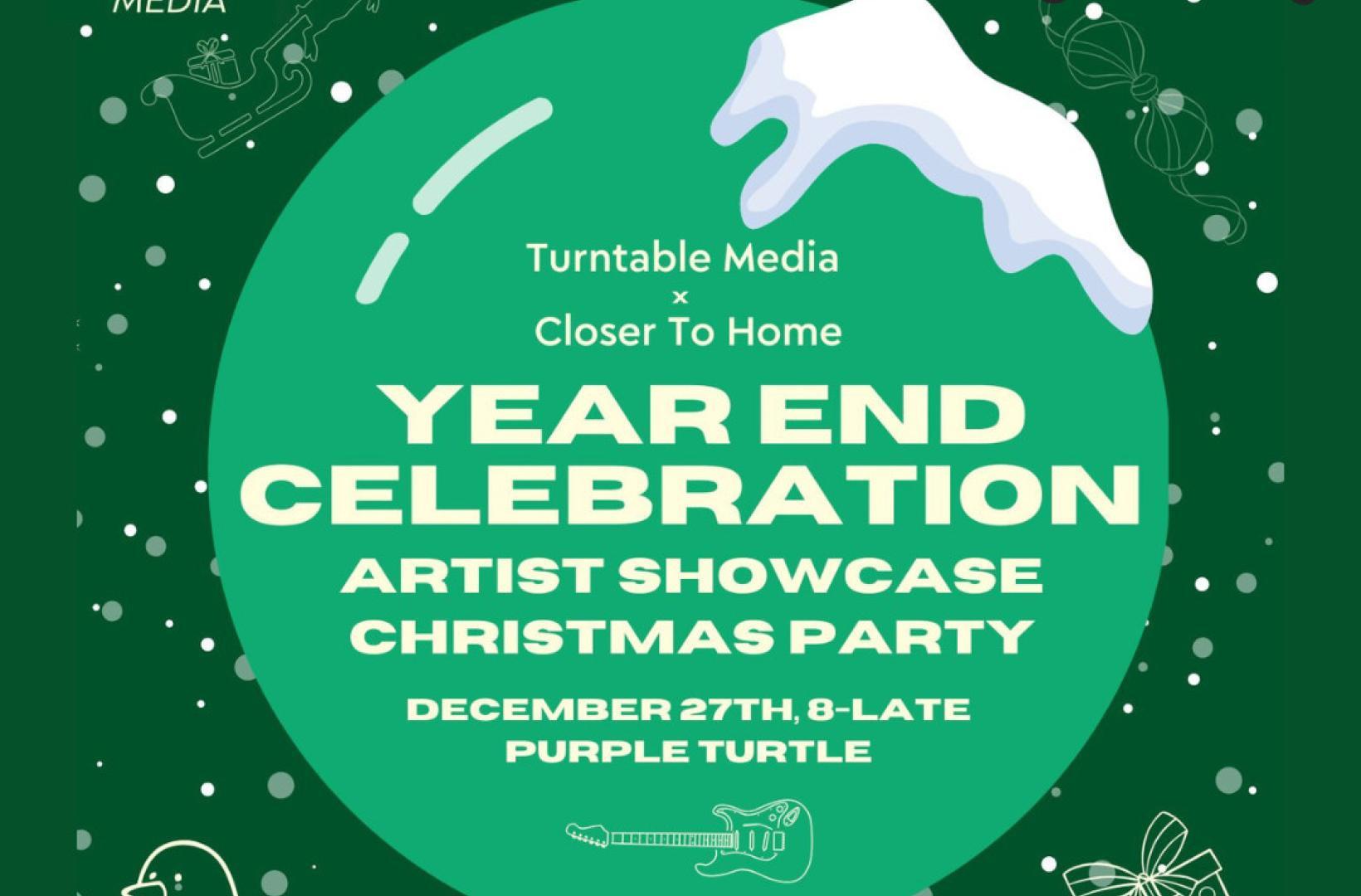 We're back at the Turtle teaming with Turntable Media for the big end-of-year party, featuring special guest artists and musicians backed by a house band.