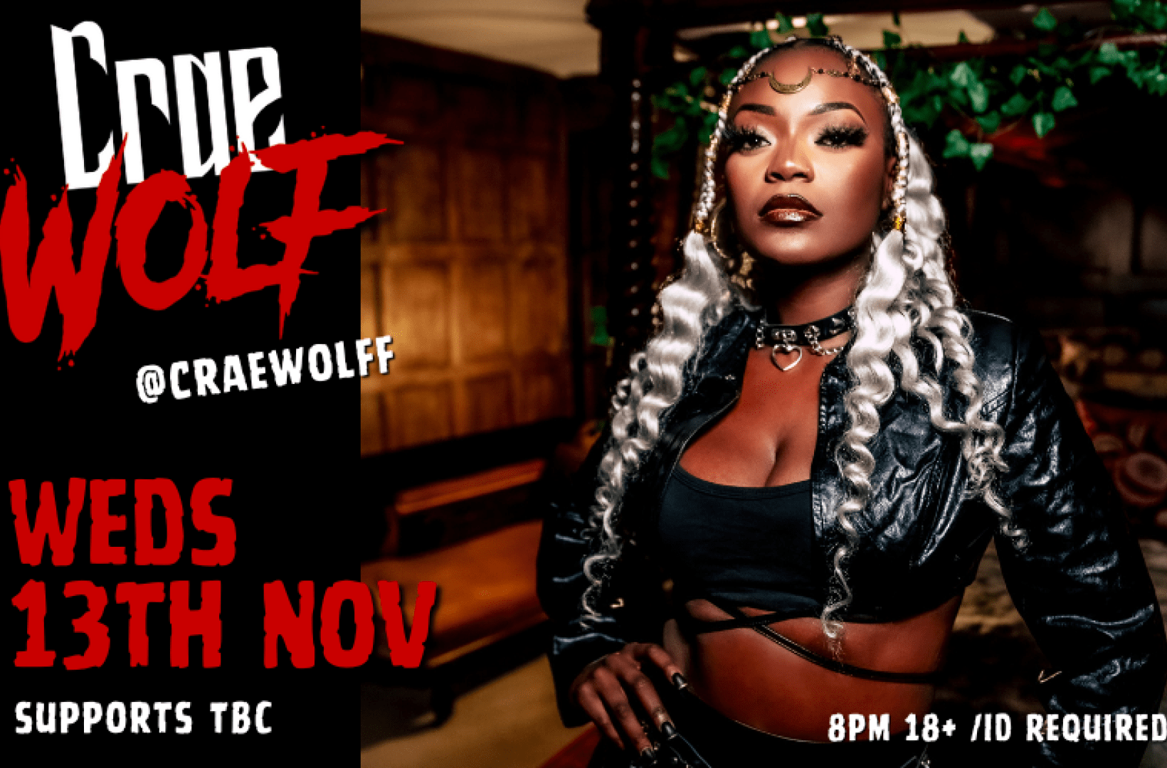 MOBO Certified artist Crae Wolf, music exists where Rock & Fantasy meets Drill. The Gothic Rapper welcomes you to her sonic universe of “Goth Metal Rap”. The she-wolf draws from a diverse range of influences to create a blazing Grunge Nu Metal vibe. Effortlessly combining English with French, her musicality is unmatched. A true cinematic experience.