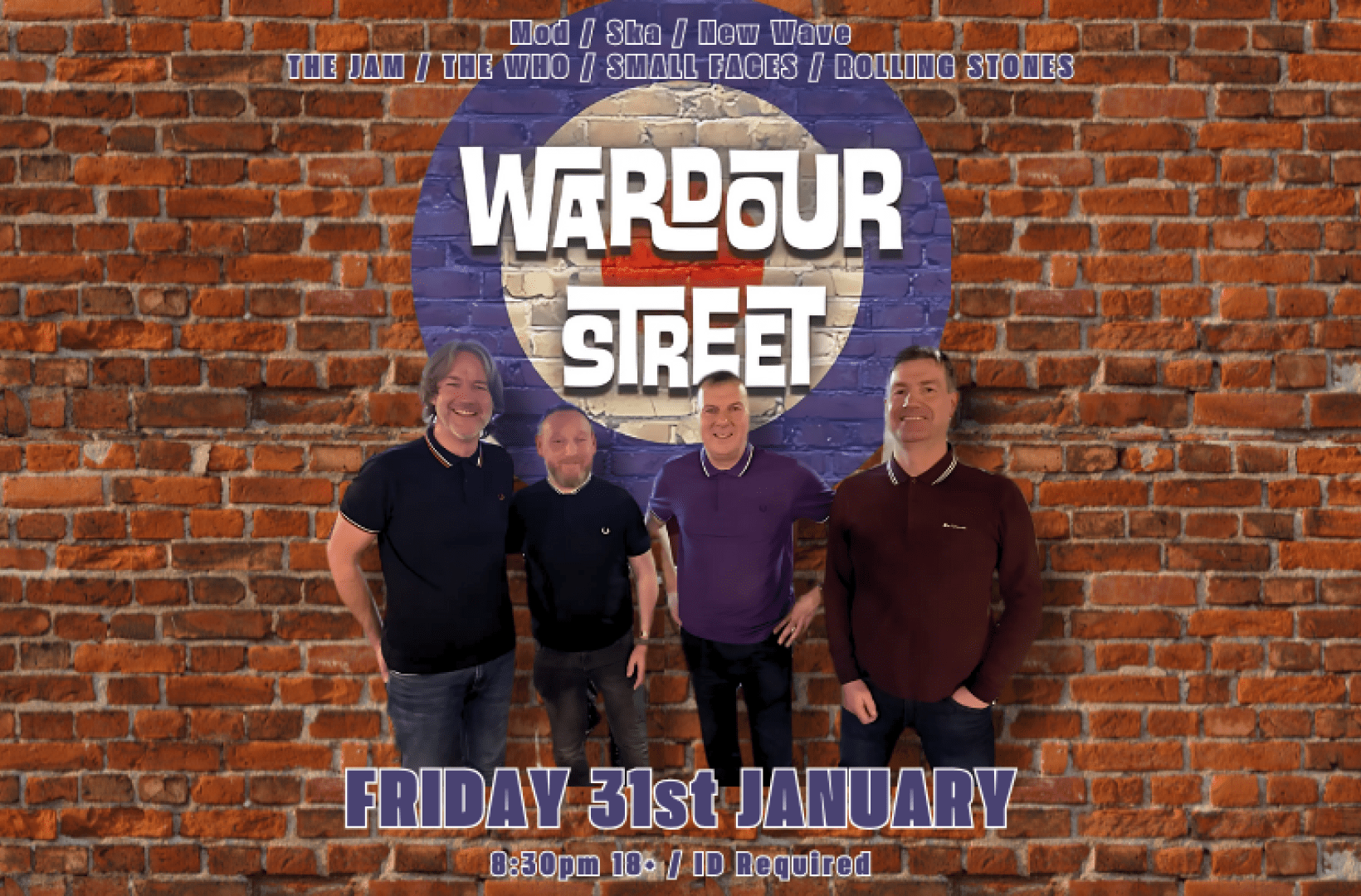 From the igniting spark of The Jam, backwards into the '60s (Small Faces, The Kinks, The Who), and forwards into New Wave and 2-tone (The Clash, The Ruts, The Specials, The Beat) and the Mod Revival (Secret Affair, Purple Hearts, The Chords), Wardour Street are the real deal Mod and New Wave covers band…pure Fred Perry-adorned modernist joy ?