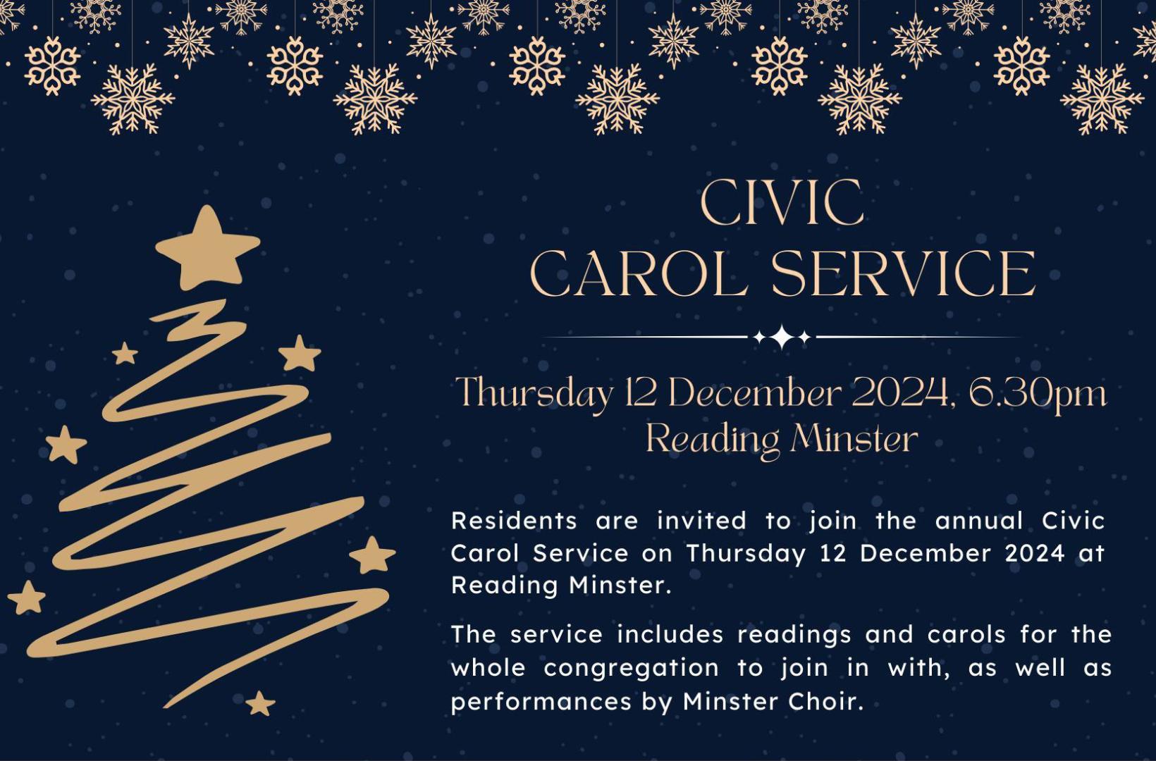 Residents are invited to join the annual Civic Carol Service on Thursday 12 December at Reading Minster.