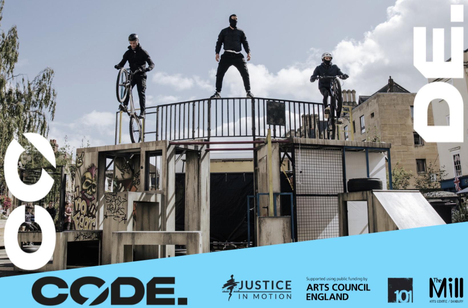CODE, Justice in Motion’s urban odyssey into County Lines and Knife Crime, is a spectacular blend of physical theatre, parkour and trials bike stunts with live rap and music. On an urban playground, skilled athletes and performers show what is happening to our young people exploited by organised drug crime gangs.