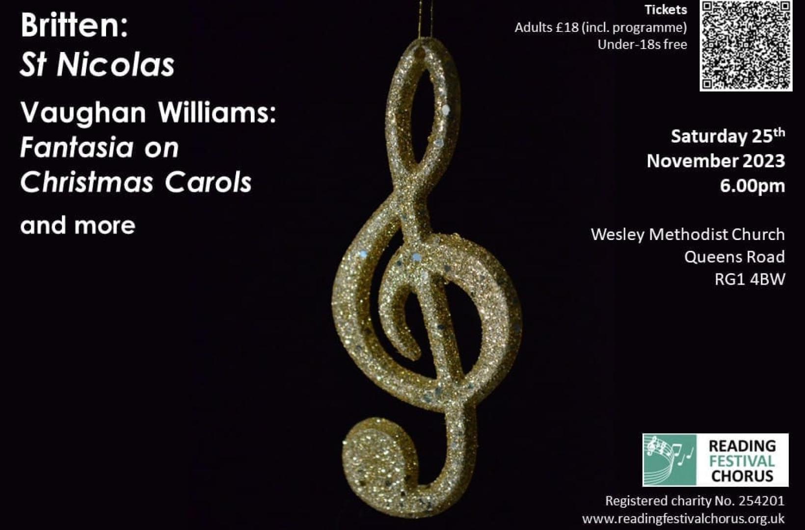 Reading Festival Chorus return to Wesley Methodist Church this November for a seasonal concert. The programme will include Britten's St Nicolas, Vaughan Williams' Fantasia on Christmas Carols and Byrd's Three motets.
