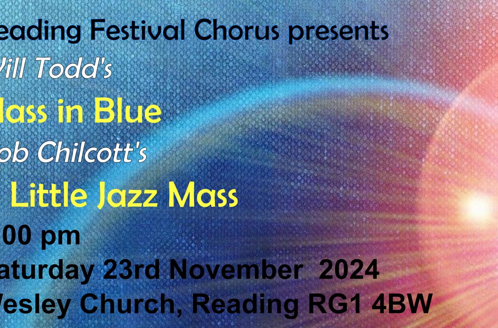 Reading Festival Chorus returns to Wesley Church this November. This year's programme will include Will Todd's Mass in Blue and Bob Chilcott's A Little Jazz Mass.