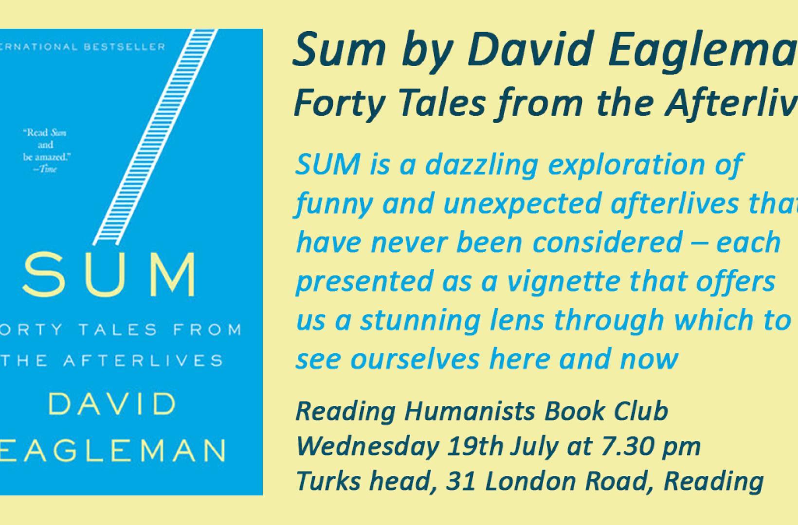 We'll be discussing the widely acclaimed Sum: Forty tales from the afterlives by David Eagleman at our next book club meeting. Join us for a lively and stimulating discussion with like-minded people in a relaxed atmosphere.