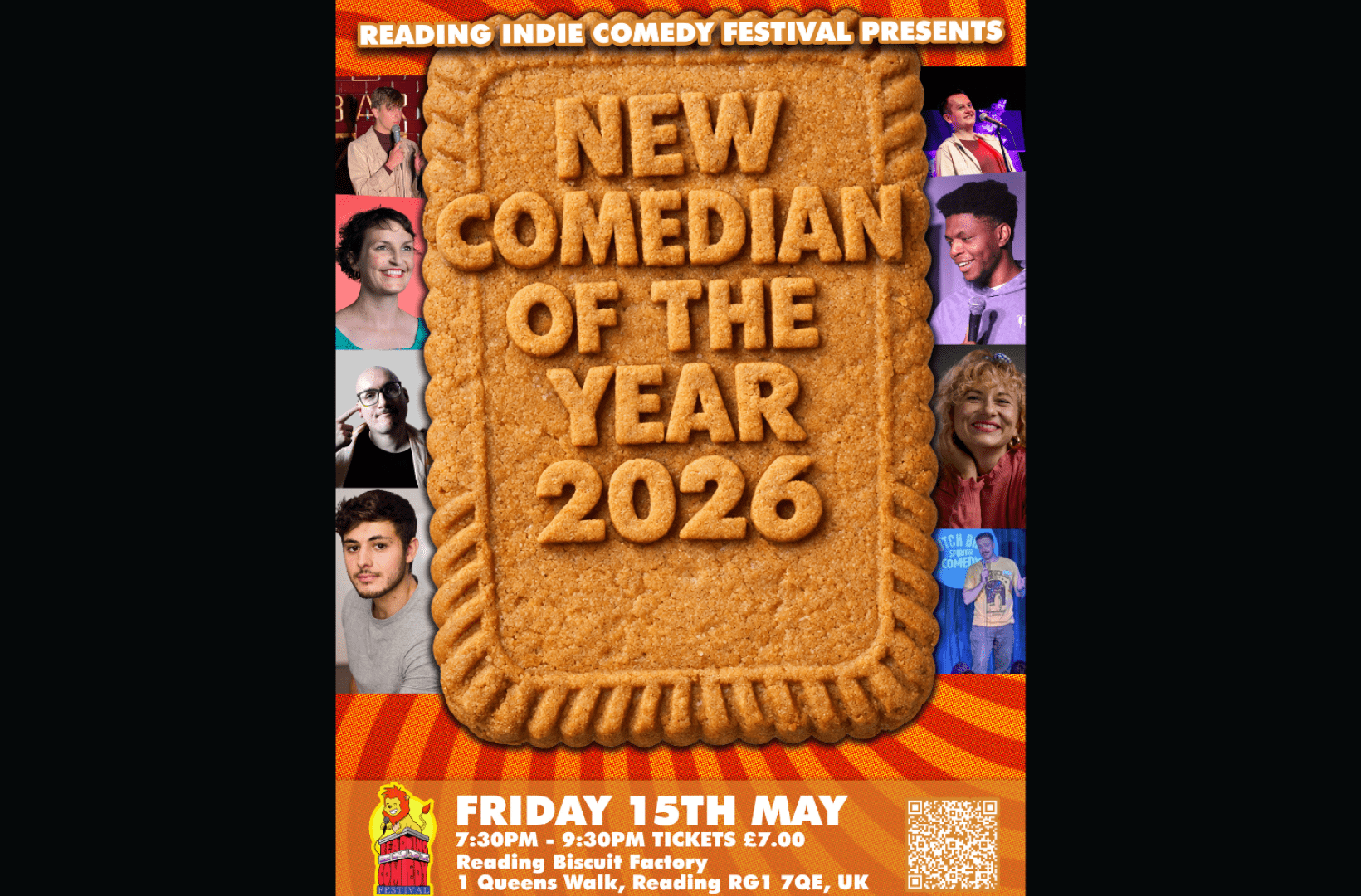 Kicking off the festival is Reading New Comedian of the Year Competition 2026 taking place at Reading Biscuit Factory on Friday 15 May between 7:30pm and 9:30pm.