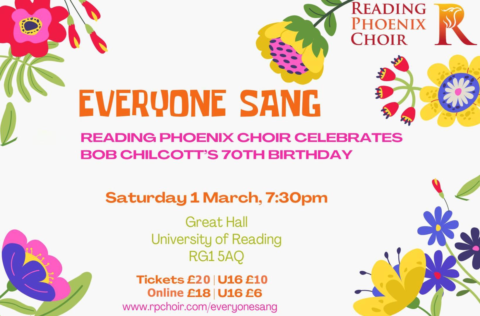 A special choral event to celebrate the 70th birthday of one of the country's most loved choral composers, Bob Chilcott, who has had a long relationship with Reading Phoenix Choir.