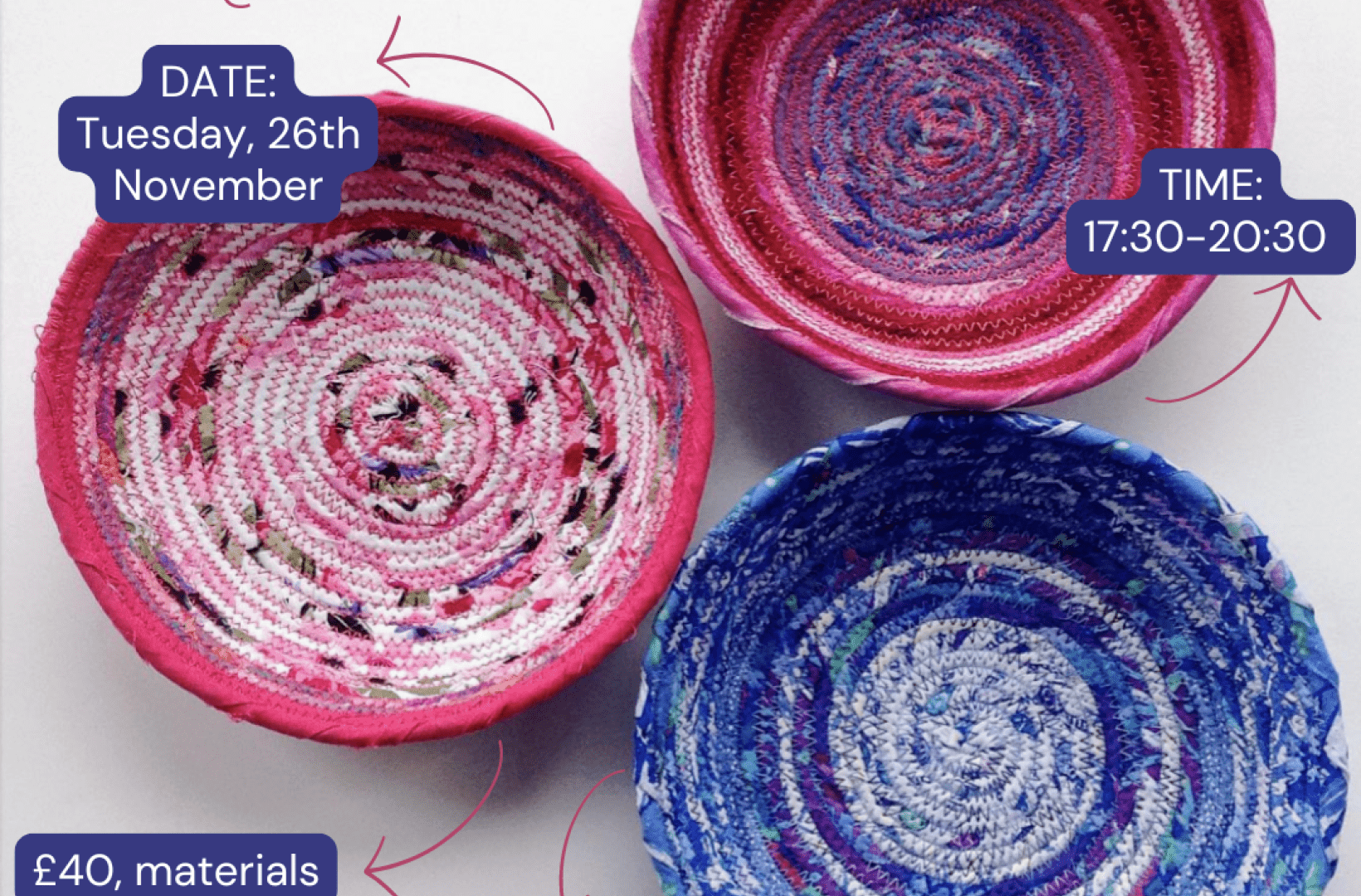 In this workshop we will take cord, thread, fabric strips and a sewing machine to sew a colourful bowl.