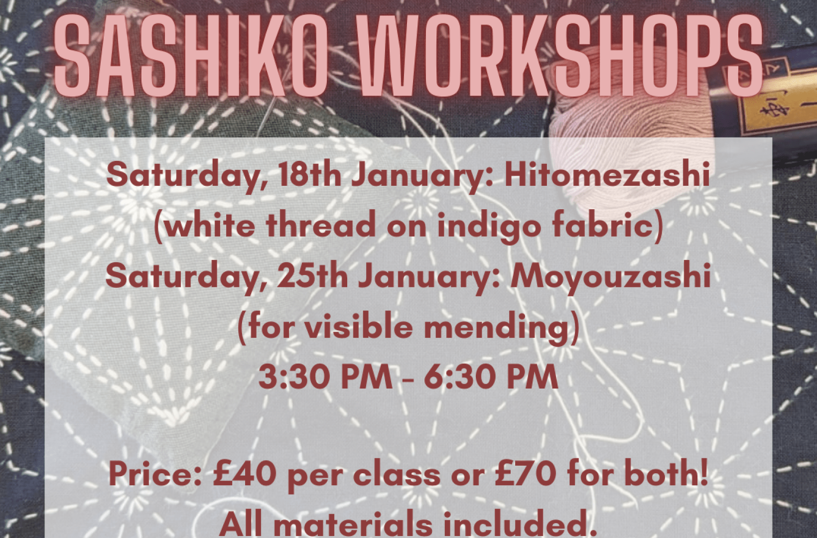 No prior experience necessary! These workshops are perfect for anyone who wants to add a touch of Japanese elegance to their home or wardrobe. Don't miss this opportunity to explore the beauty of Sashiko!