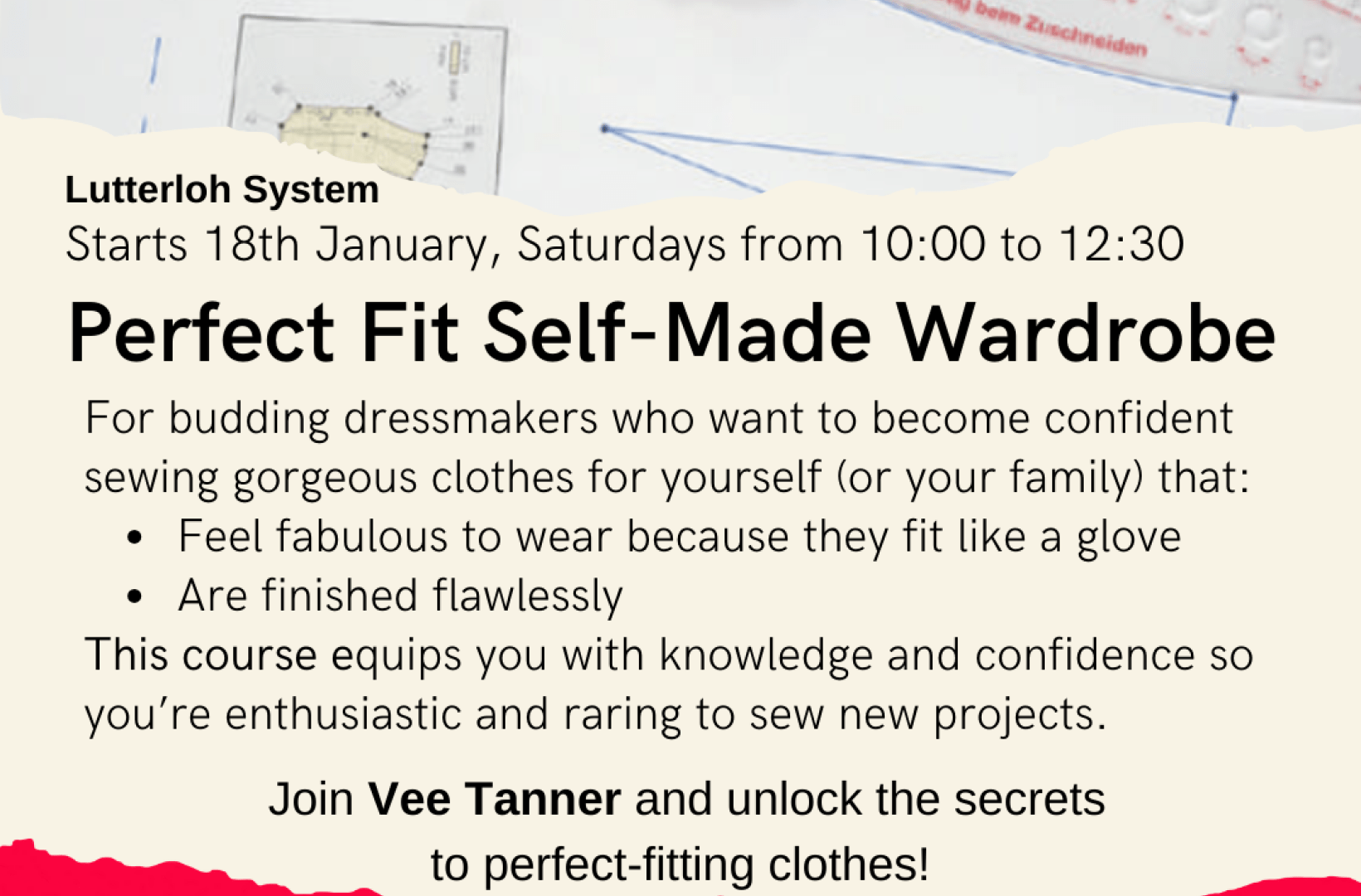 Introducing the "Perfect Fit Self-Made Wardrobe"! A 6-week in-person comprehensive pattern drafting and dressmaking course using the Lutterloh pattern drafting system.