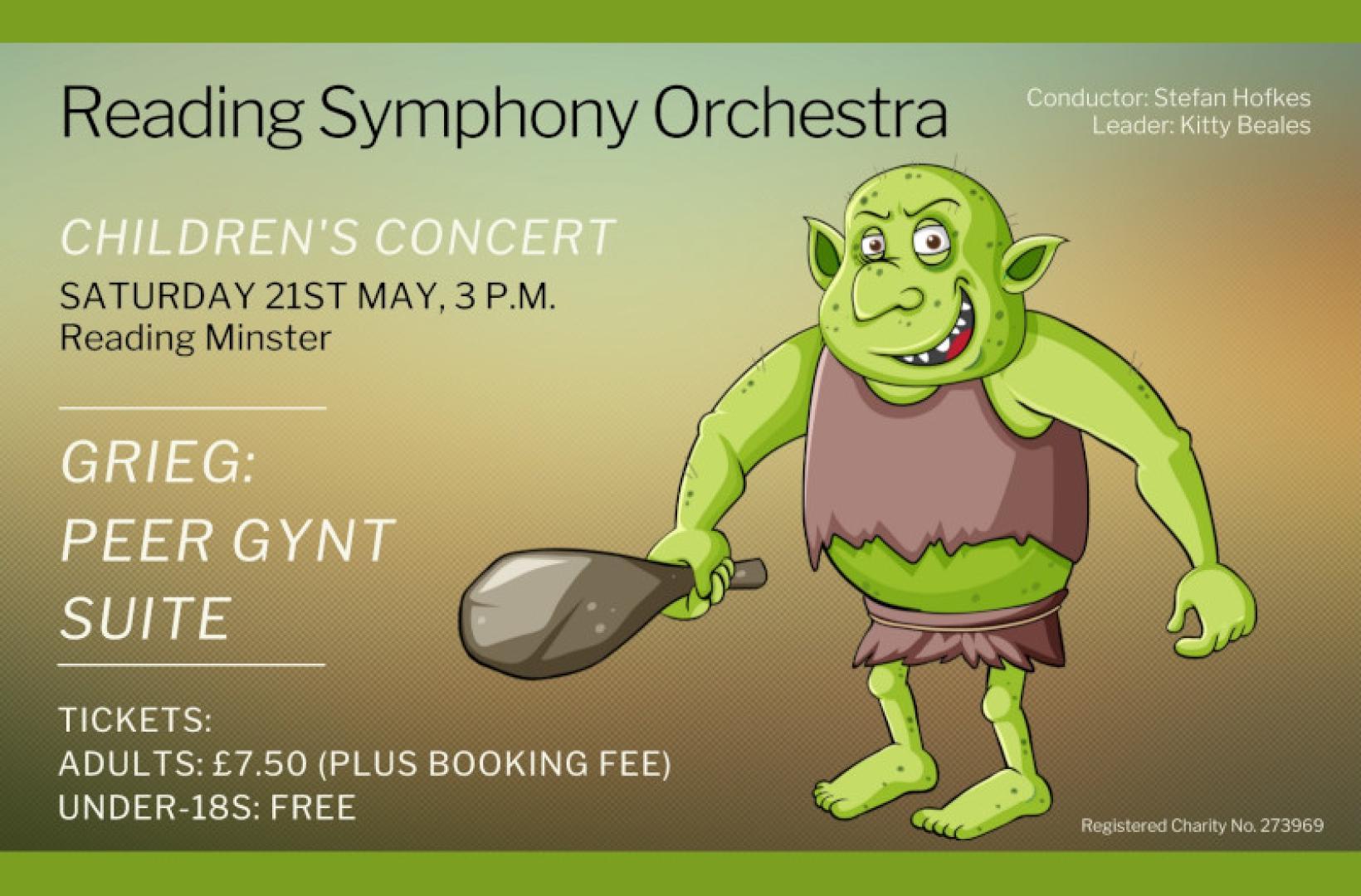 Reading Symphony Orchestra invites you and your little ones to our Children’s Concert on Saturday 21 May 2022 at Reading Minster. We’ll be performing Grieg’s ‘Peer Gynt Suite’, with special narration by David Barrell. You’ll hear tales of Peer Gynt’s fantastical adventures, including him falling in love with a girl he’s not allowed to marry, running away to the mountains only to be caught by trolls, getting into a scrape with the troll king, escaping to far-flung climes and being shipwrecked on his way home to Norway many years later.