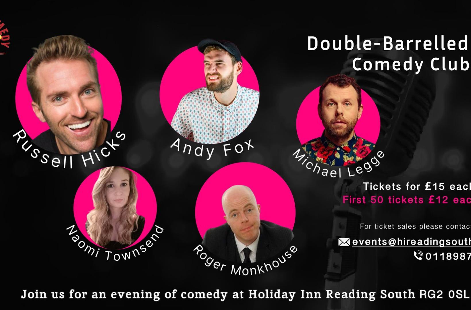 Join us for an evening filled with laughter and joy at the Holiday Inn Reading-South M4, JCT.11. Partnered with Dave's Comedy, we are bringing you our second comedy event that will have you laughing out loud - sponsored by Double-Barrelled!