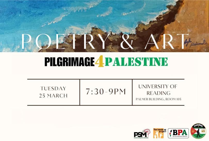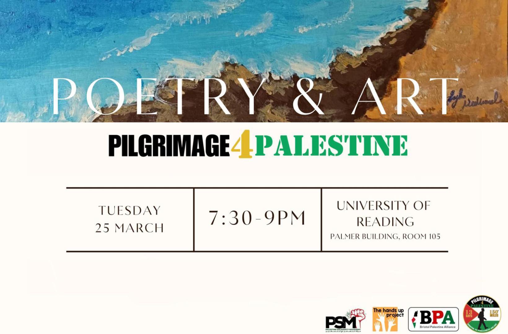 Poets' Café are honoured to be hosting Pilgrimage for Palestine at the University of Reading's Palmer Building, Room 105.