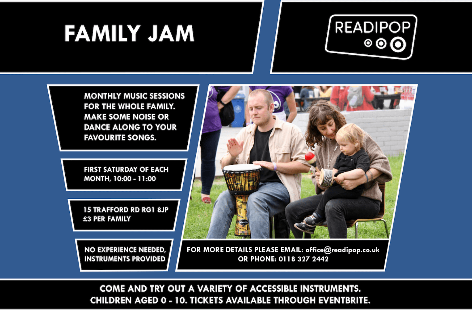 A monthly family music session for kids and their adults to jam together!