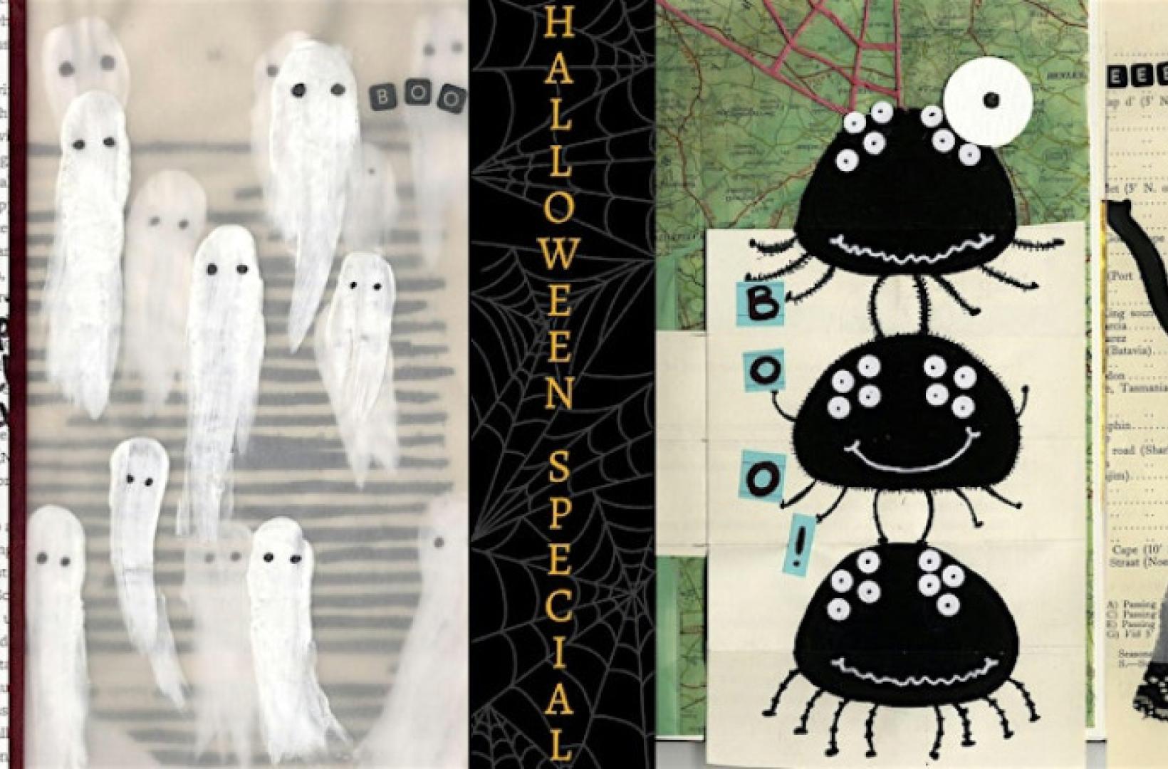 Spooky season themed dice-driven art games from Dice Doodles and Random Doodle Club will meet creepy collage and paper-folding from Altered Book Hour! Inspired by ghosts and ghouls (and the odd friendly spider), we'll be making creepy and wonderful things in our altered books using dice to take the stress out of choosing what to make. All collage and drawing materials, scissors, glue, and old books provided. Bring your own altered book or a hardback sketcbook if you prefer.